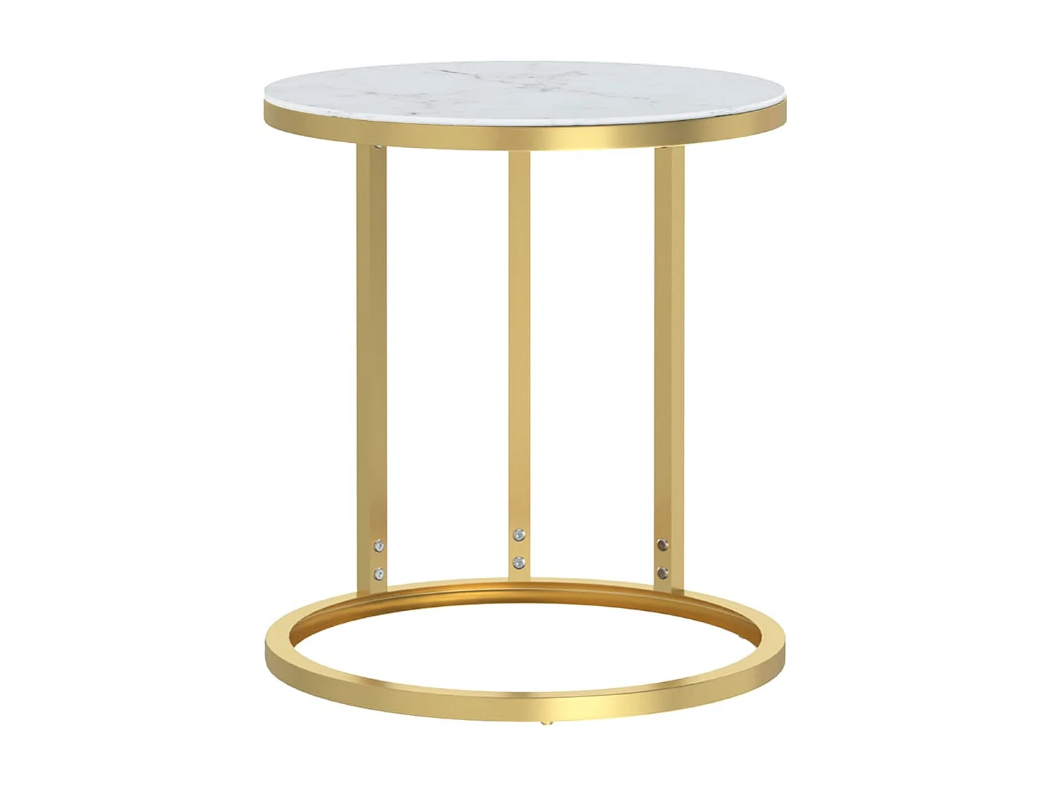 Table d'appoint Doré et marbre blanc 45 cm Verre trempé