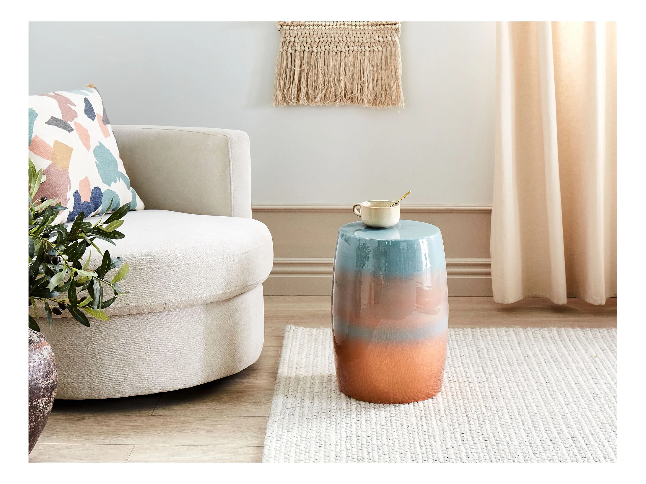Pouf en tissu bouclette terracotta ECAMBI
