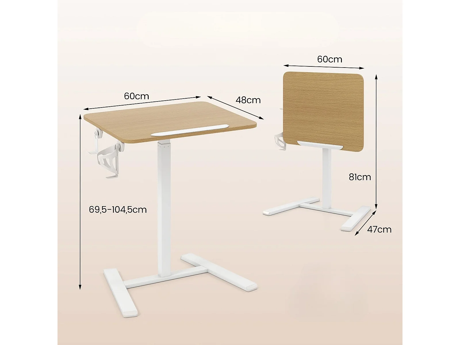 Bureau Assis-debout Mobile Bureau Roulant Réglable en Hauteur avec Vérin Pneumatique Bureau avec Roulettes Verrouillables Charge statique 75 kg Rose+Blanc