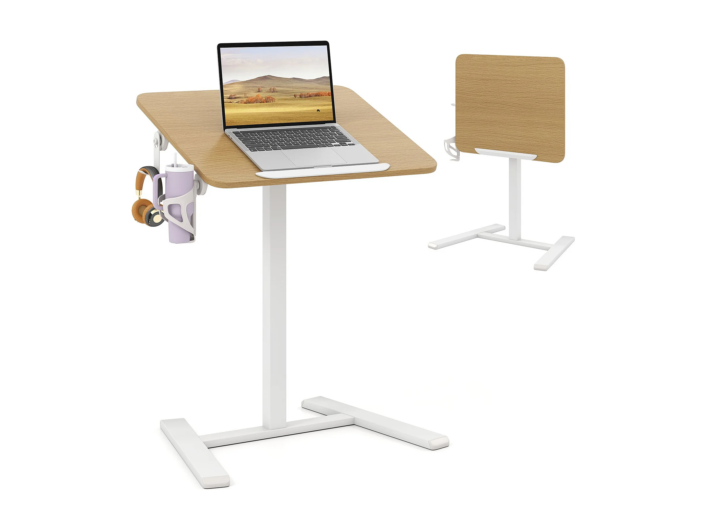 Bureau à roulettes & plateau inclinable Table d'ordinateur mobile Table d'ordinateur portable Naturel
