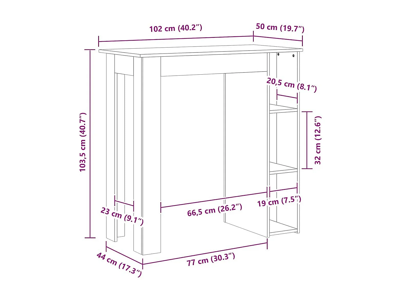 Table de bar et étagère de rangement Chêne fumé 102x50x103,5 cm