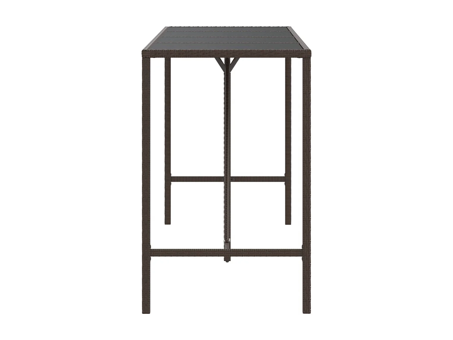 Table de bar et dessus en verre marron 180x70x110 cm poly rotin