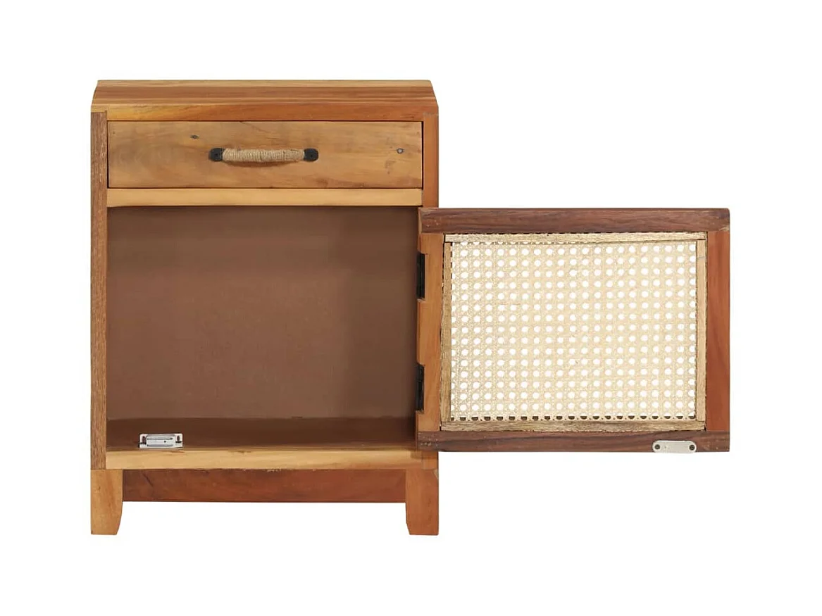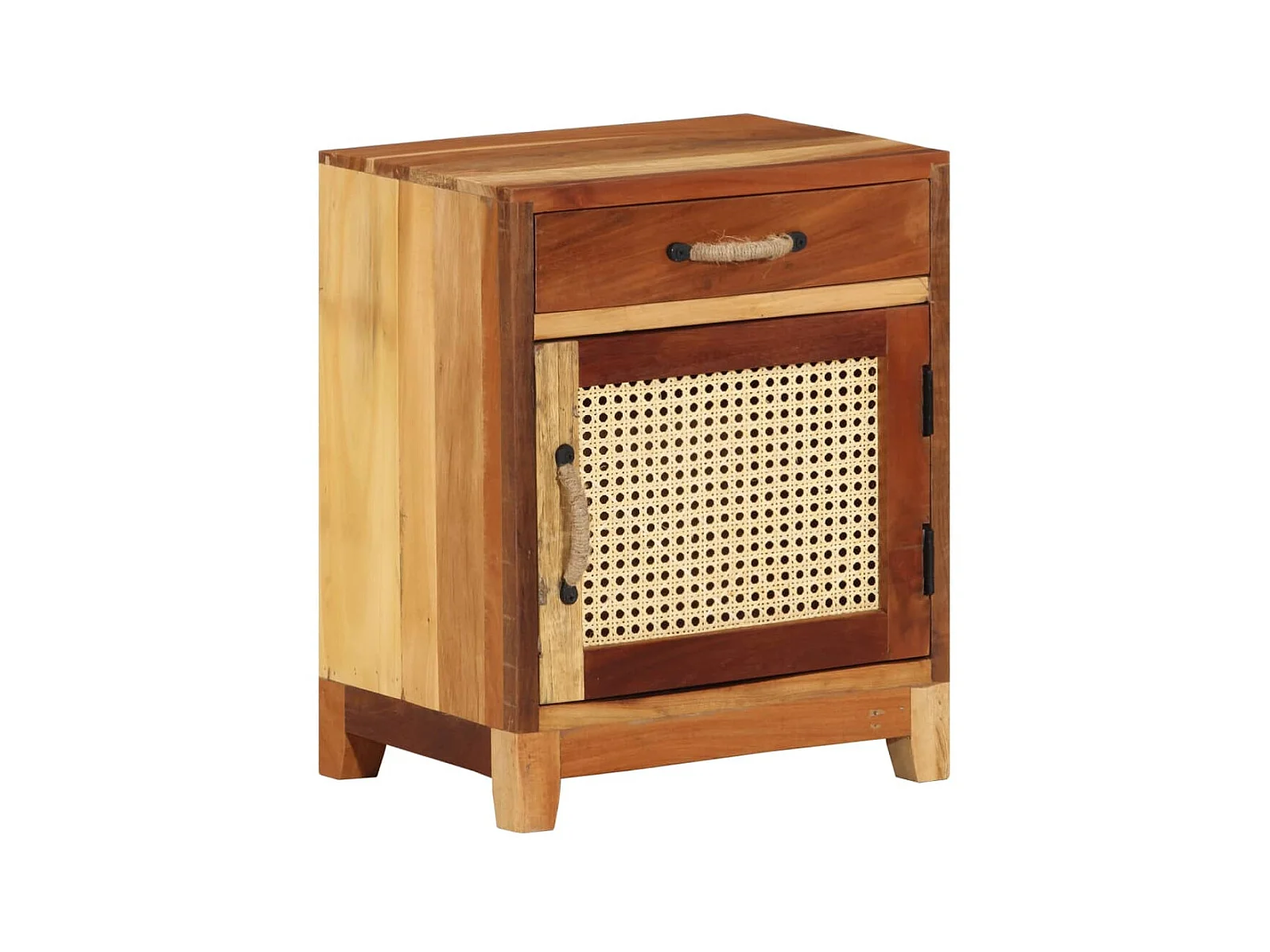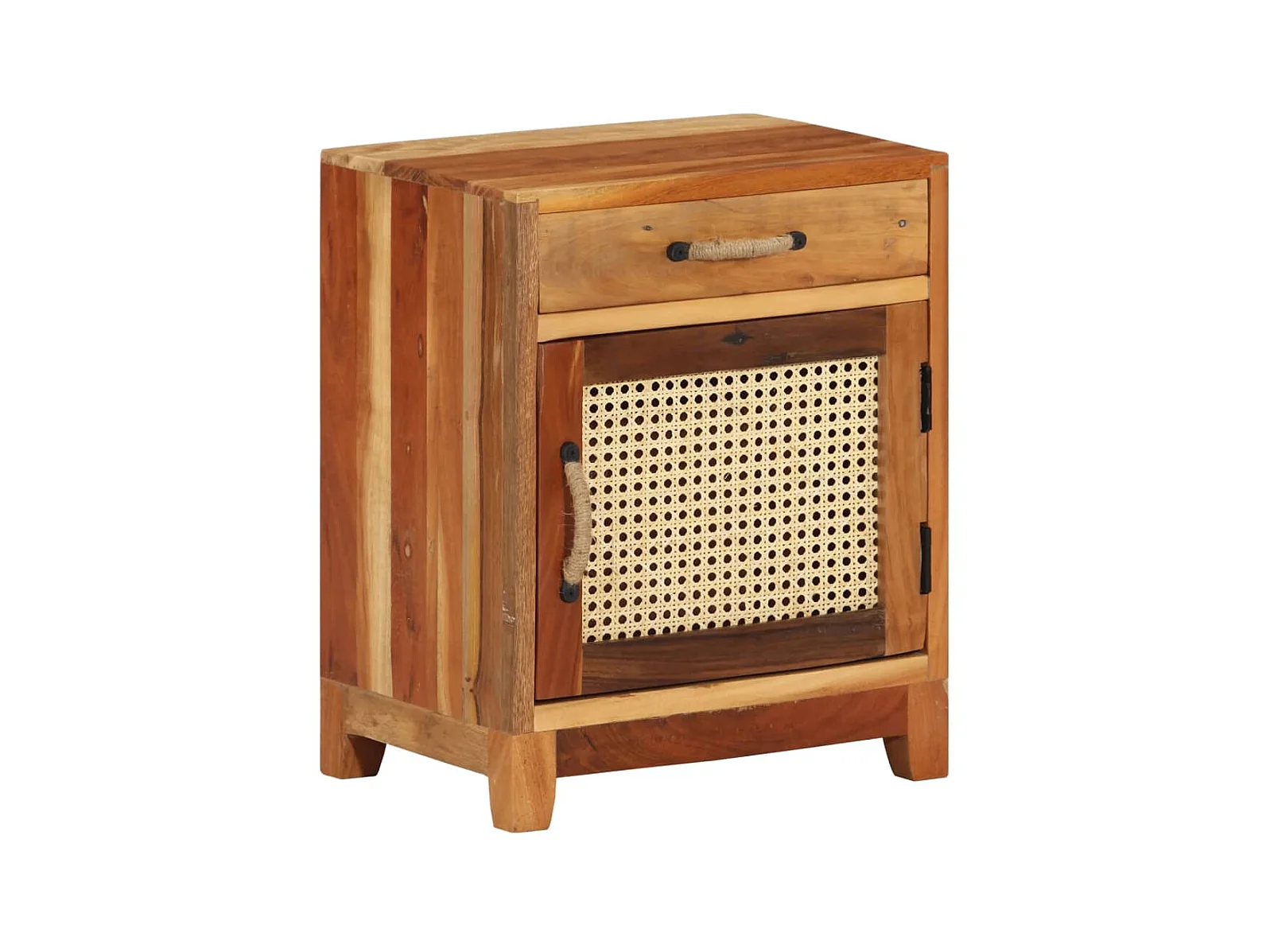 Table de chevet 40x30x50 cm Bois de manguier et canne naturelle