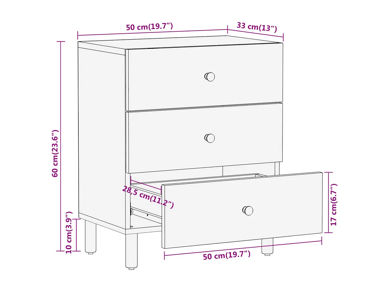 Table de chevet 50x33x60 cm bois d'acacia solide
