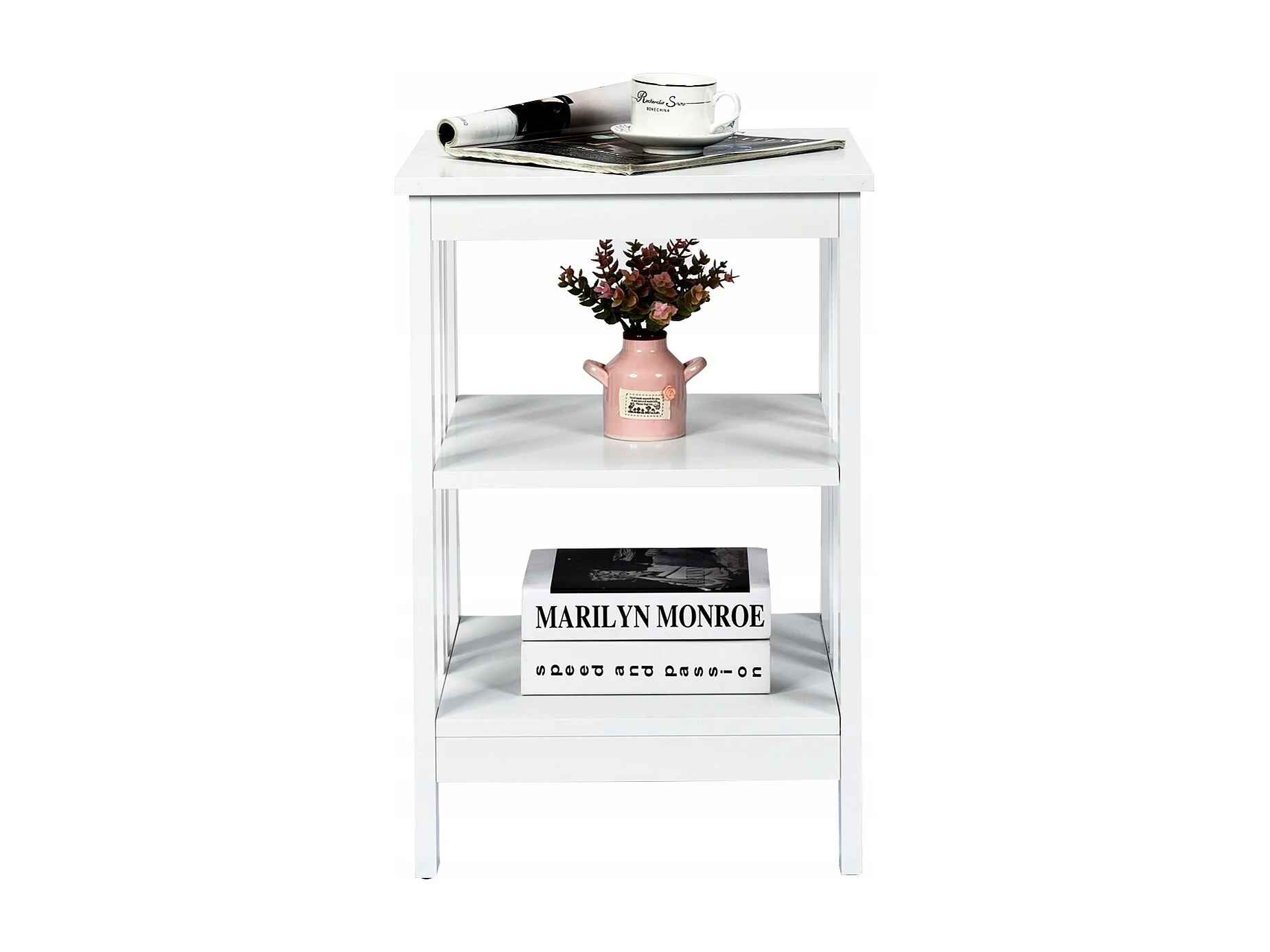 Table de Chevet à 3 Niveaux Table d'Appoint Simple et Contemporain 40x40x61cm Blanc