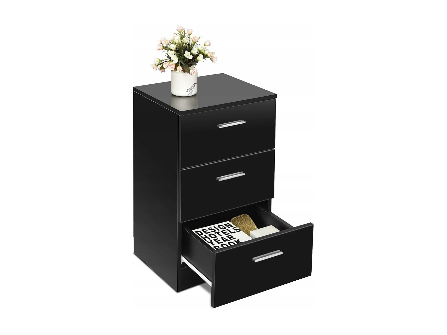 Table de Nuit Table de Chevet Moderne avec 3 Tiroirs Pour Chambre à Coucher 46x37x65cm Noir