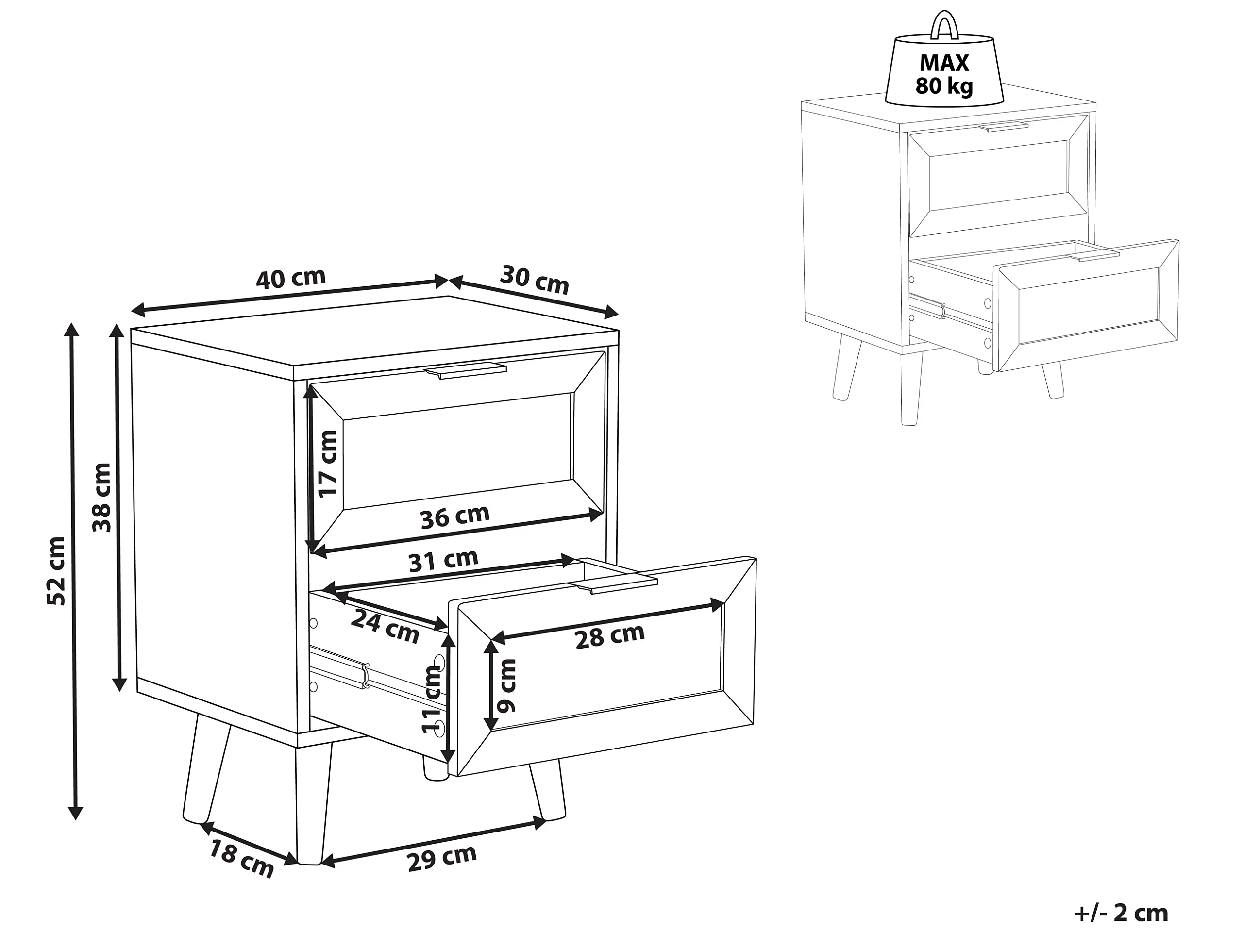 Table de nuit à 2 tiroirs OPOCO Noir