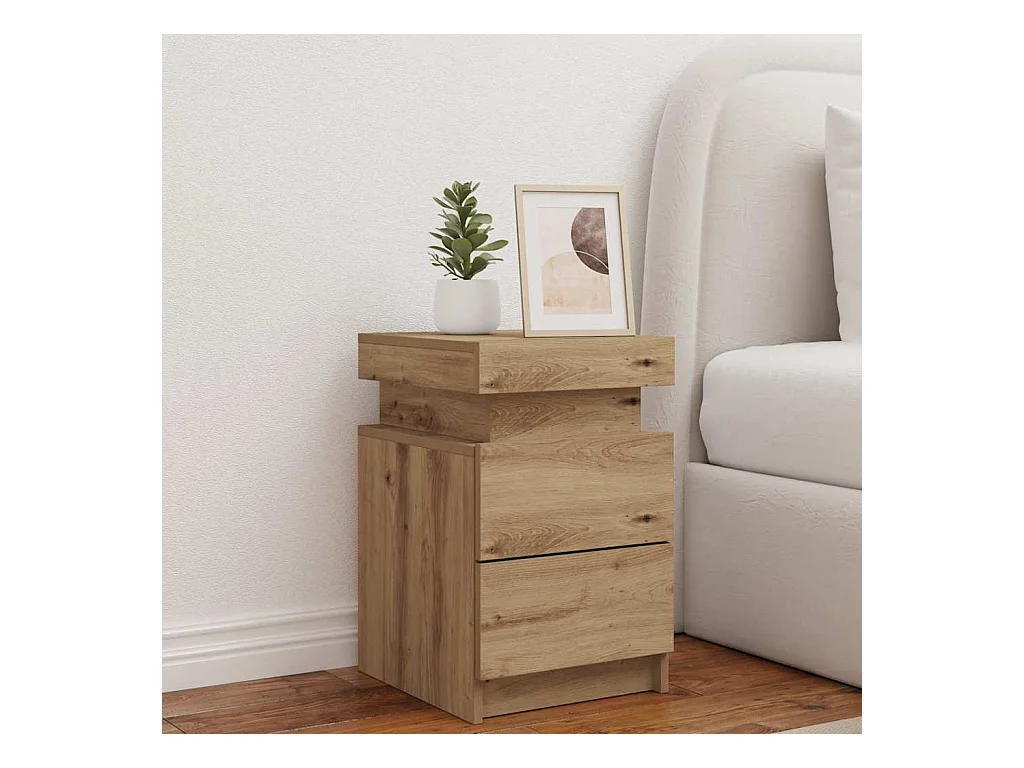 Table de chevet avec LED chêne artisanal bois d'ingénierie
