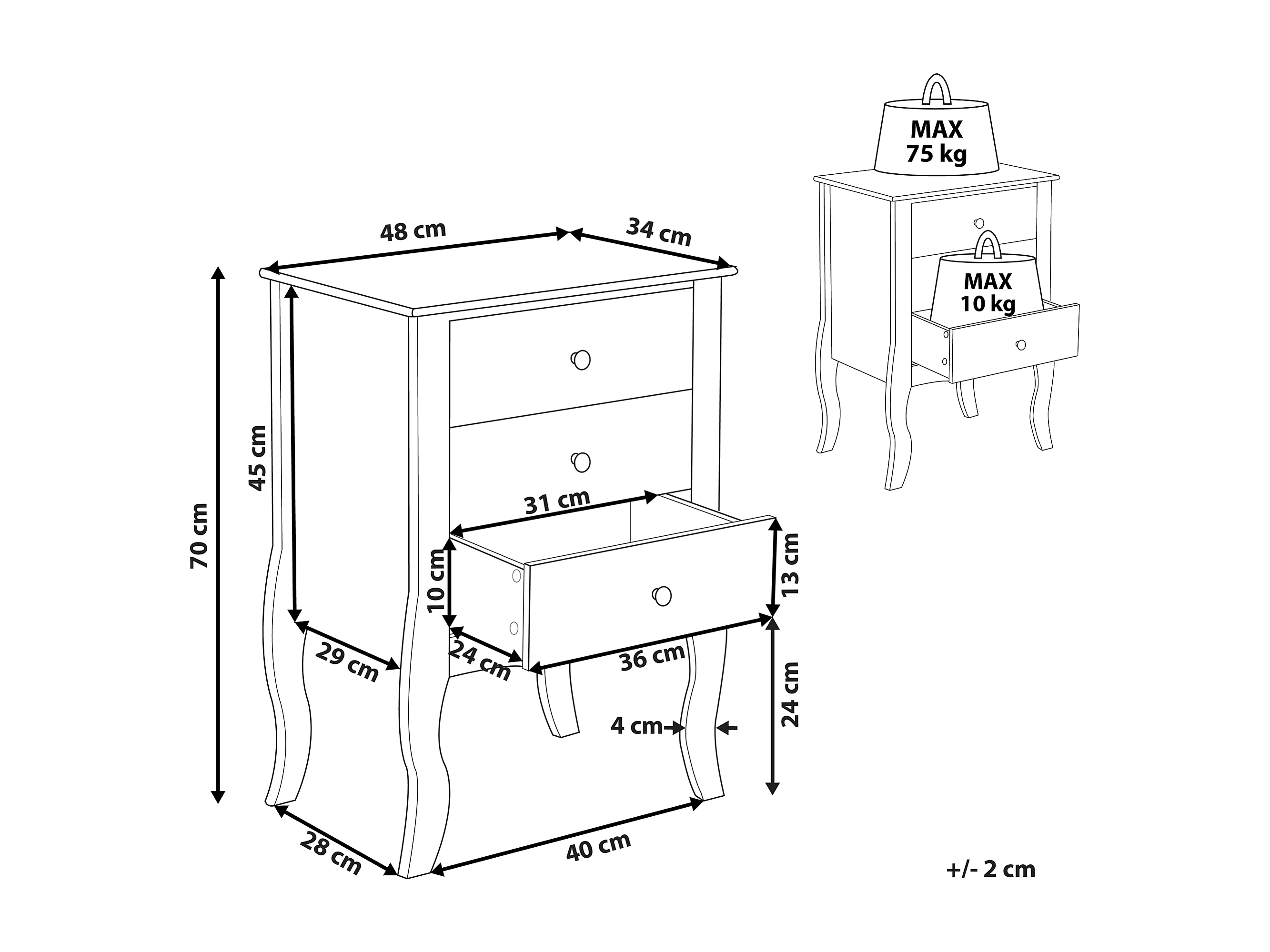 Table de chevet 3 tiroirs Sweet - L33,5 cm