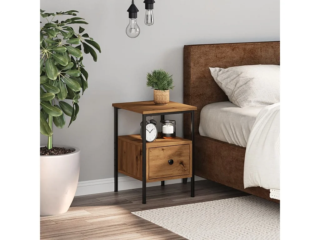 Table de chevet chêne artisanal 34x35,5x50 cm bois d'ingénierie