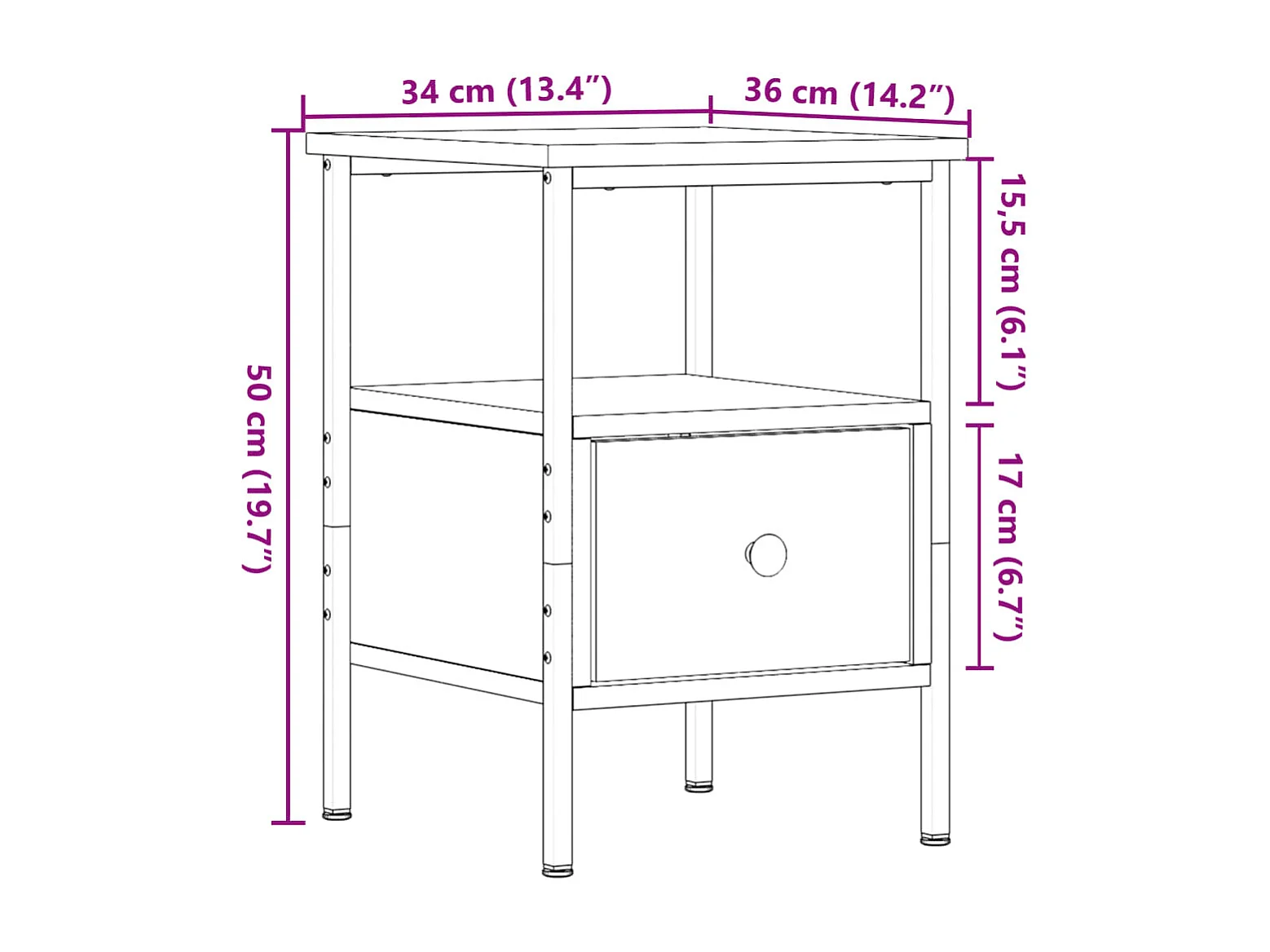 Table de chevet chêne sonoma 34x36x50 cm bois d'ingénierie