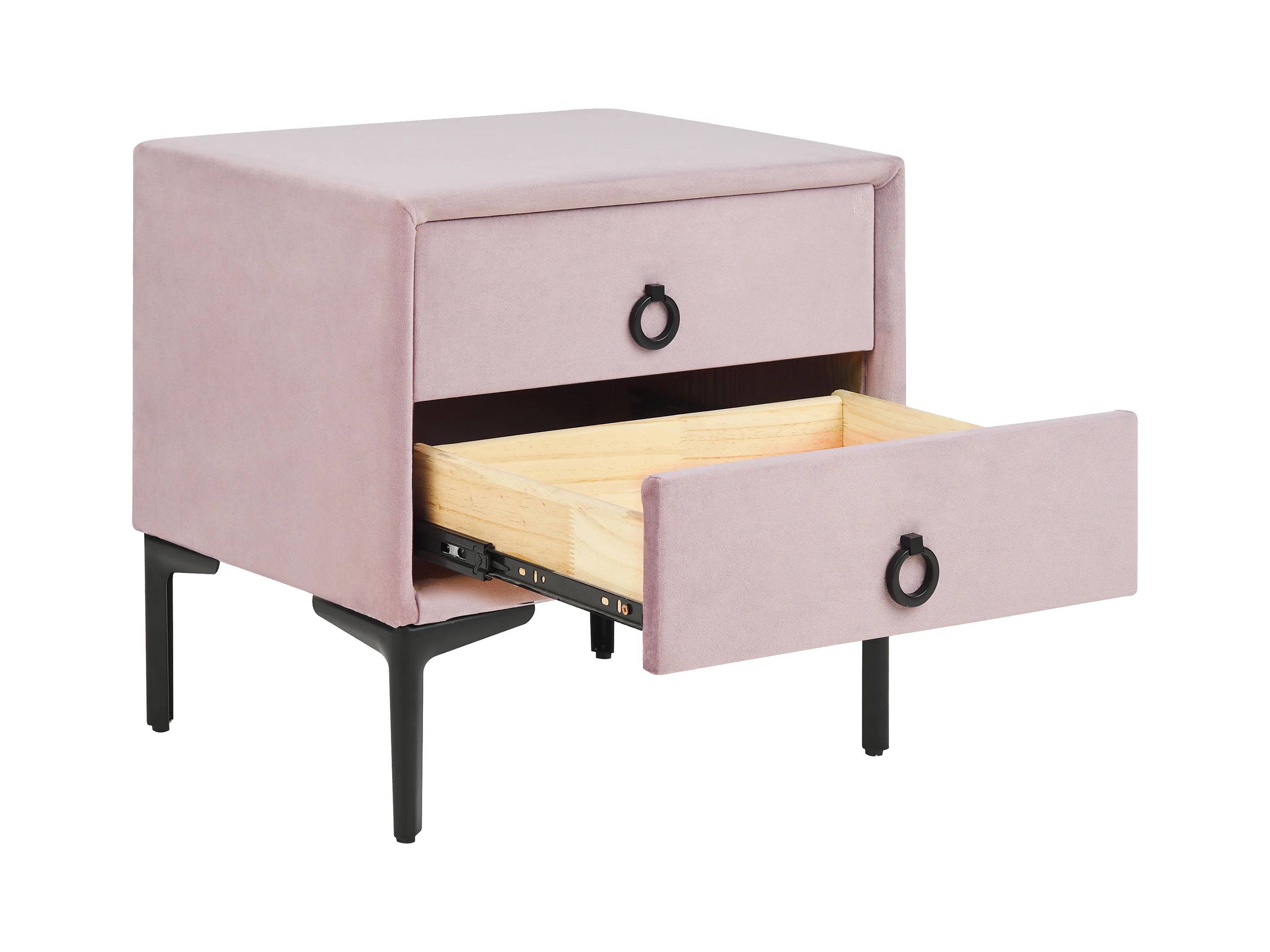 Table de nuit à 2 tiroirs SEZANNE Velours Rose