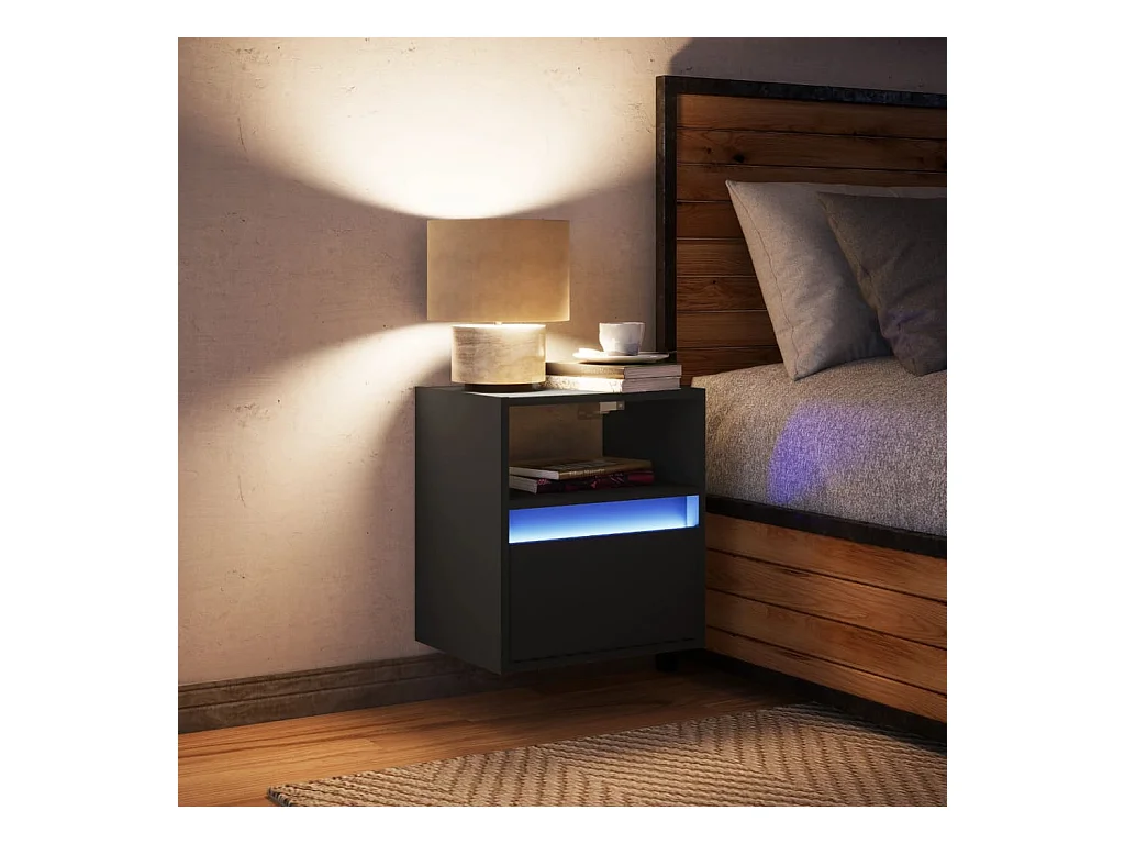 Table de chevet murale avec lumières LED noir