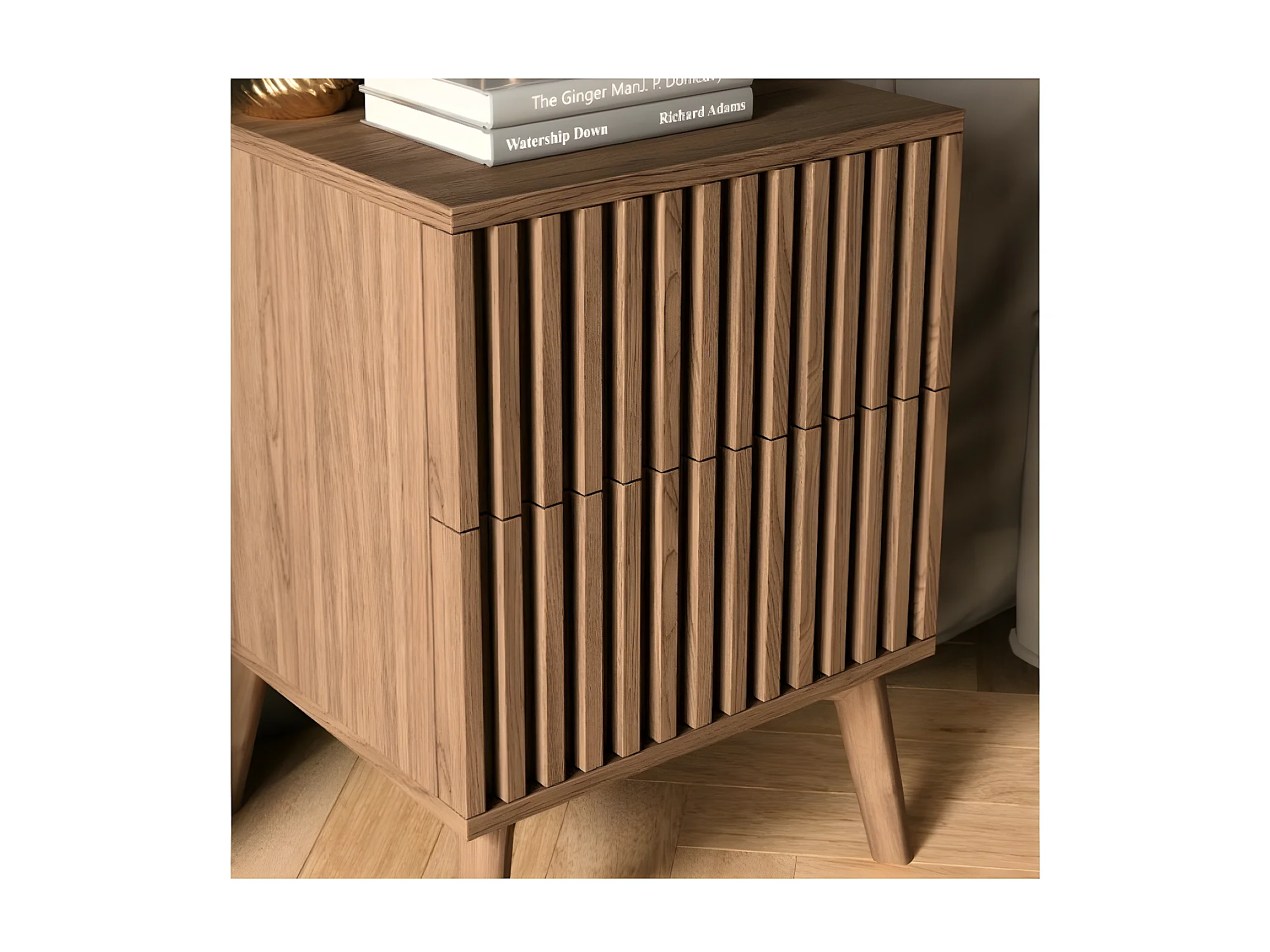 Chevet 2 Tiroirs Décor Bois et Blanc - ALBURA