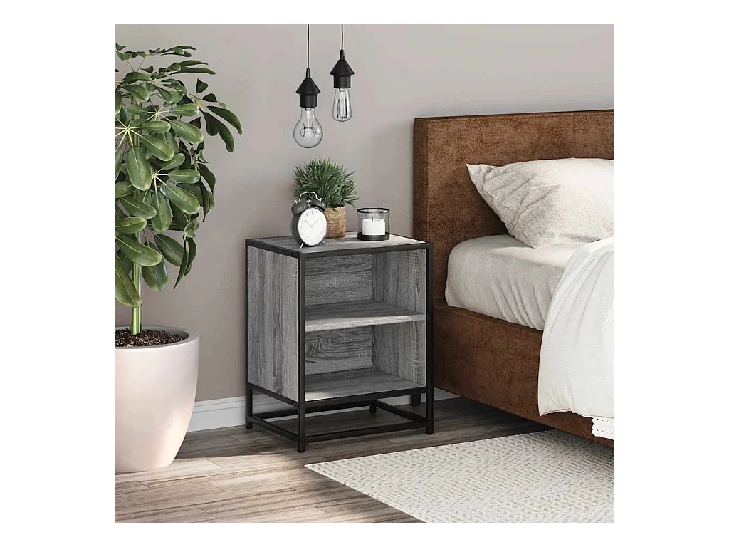 Table de chevet sonoma gris 40x31x50 cm bois d'ingénierie métal