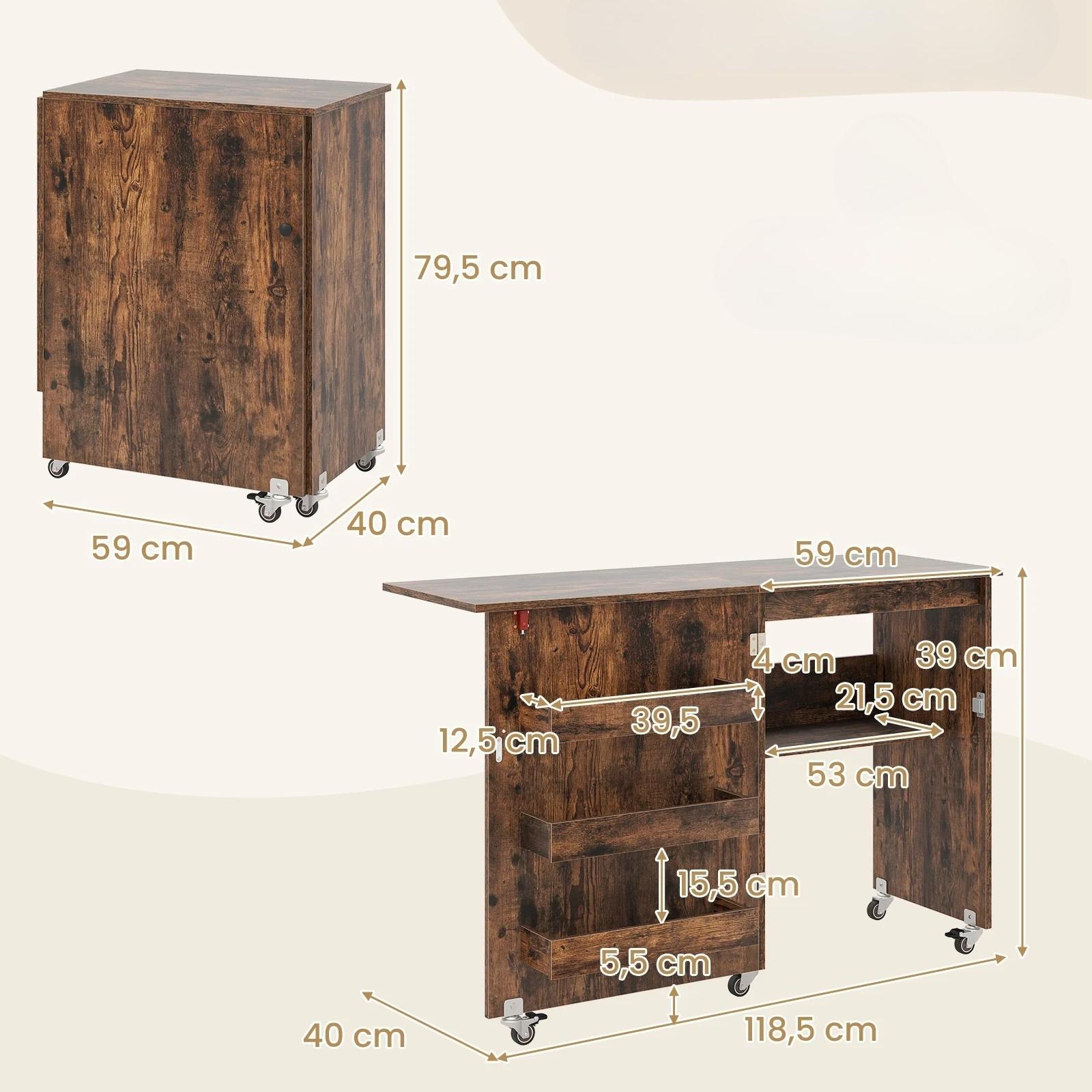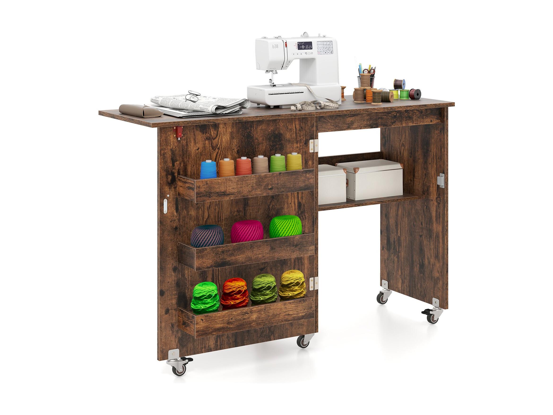 Table de Couture Pliante Station D'artisanat Roulante avec Étagère de Rangement 3 Bacs Cachés Bureau pour Machine à Coudre Mobile Café