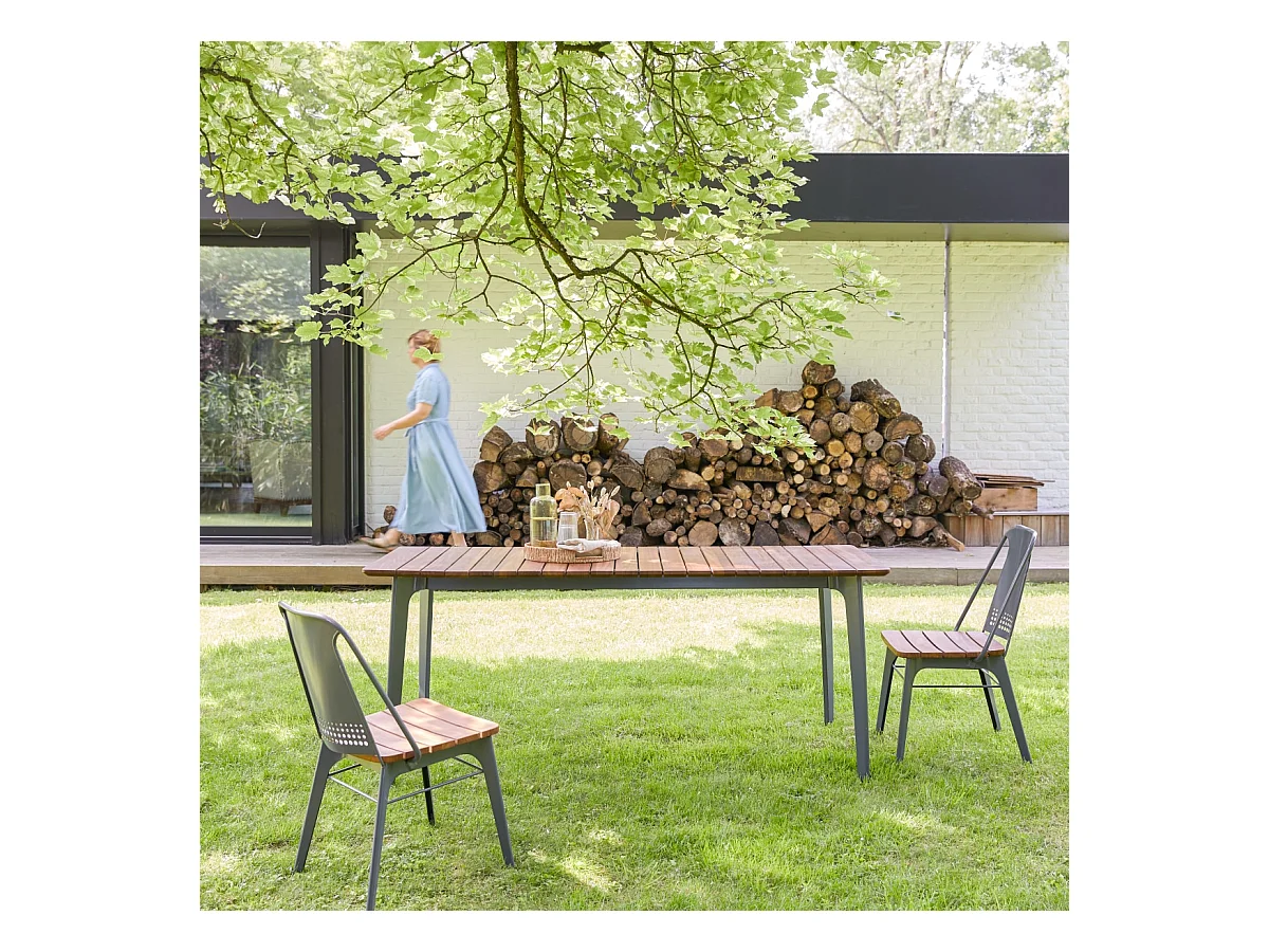 Table de jardin en bois de teck massif et métal Toscane 6/8 pers.