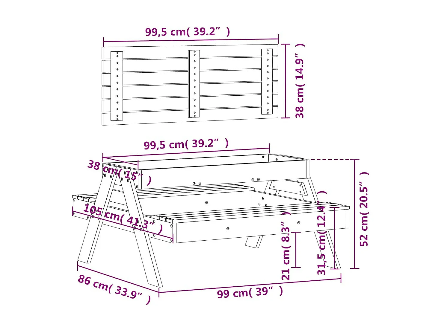 Table de pique-nique et bac à sable enfants bois massif douglas