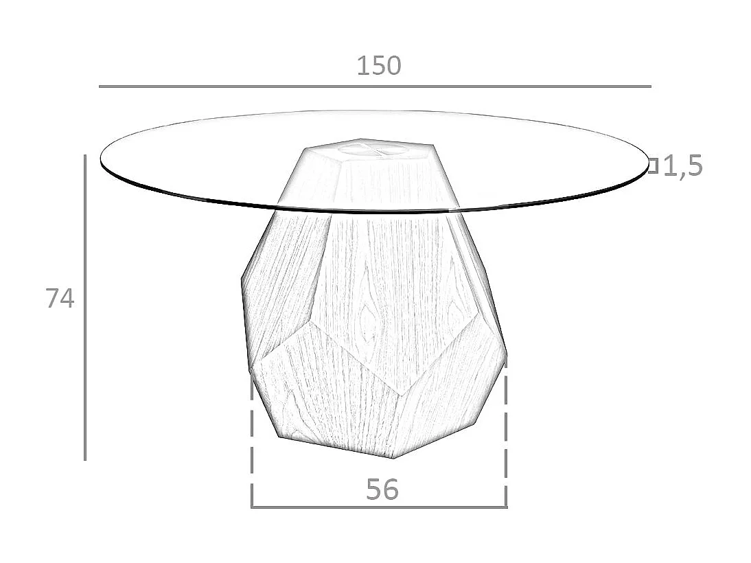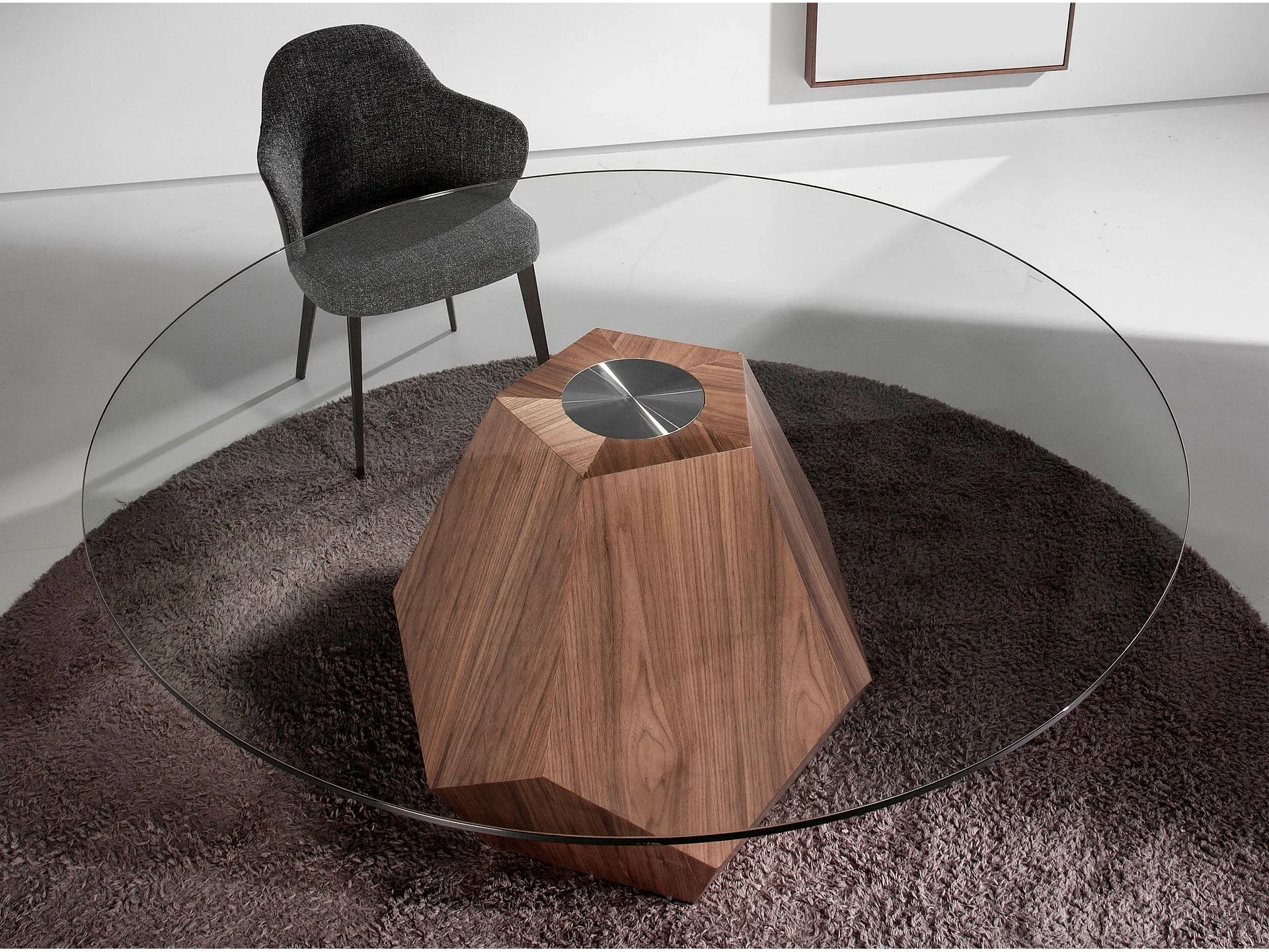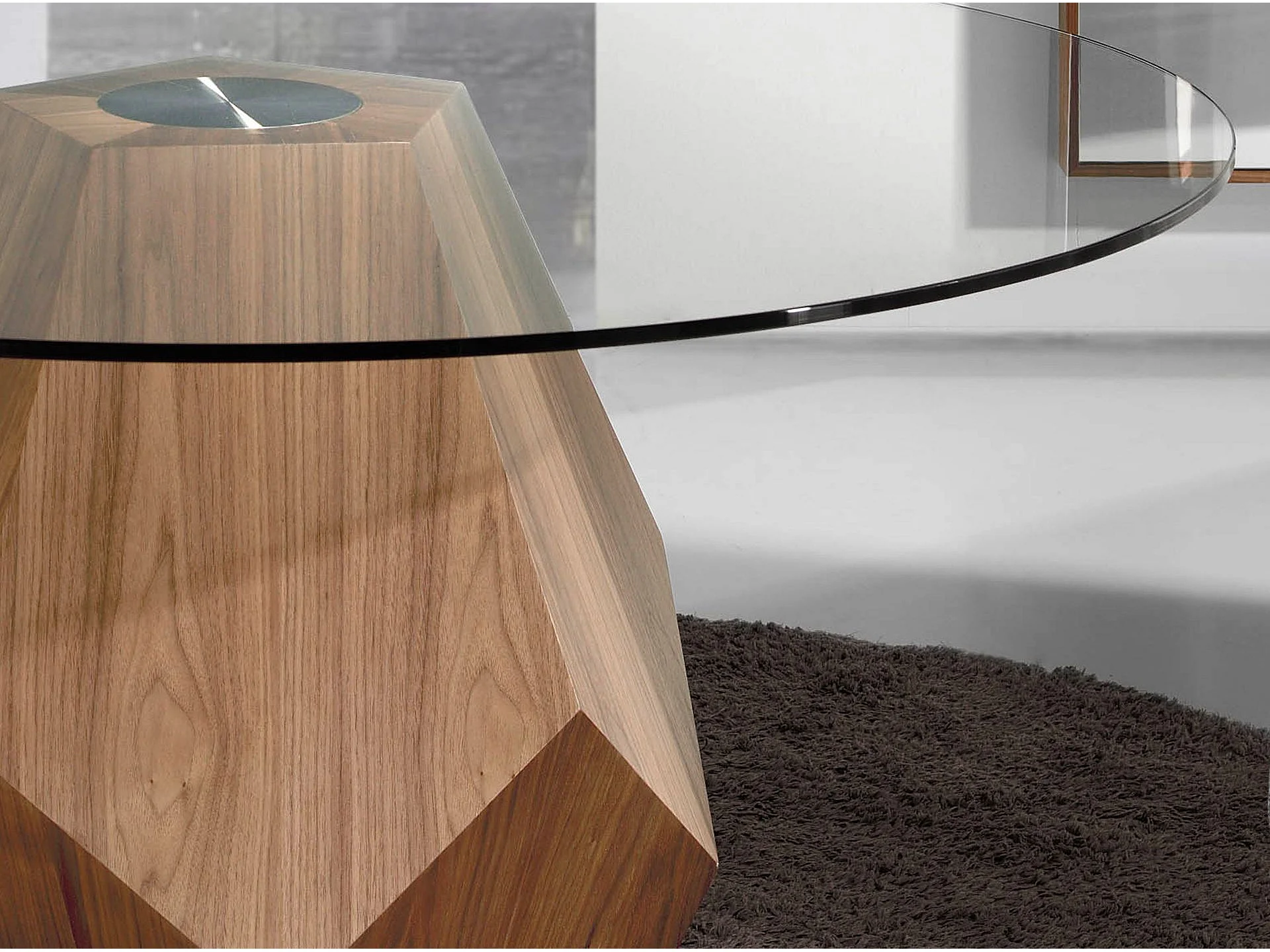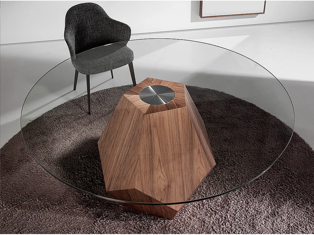 Table à manger ronde verre trempé et noyer 1093 ANGEL CERDA