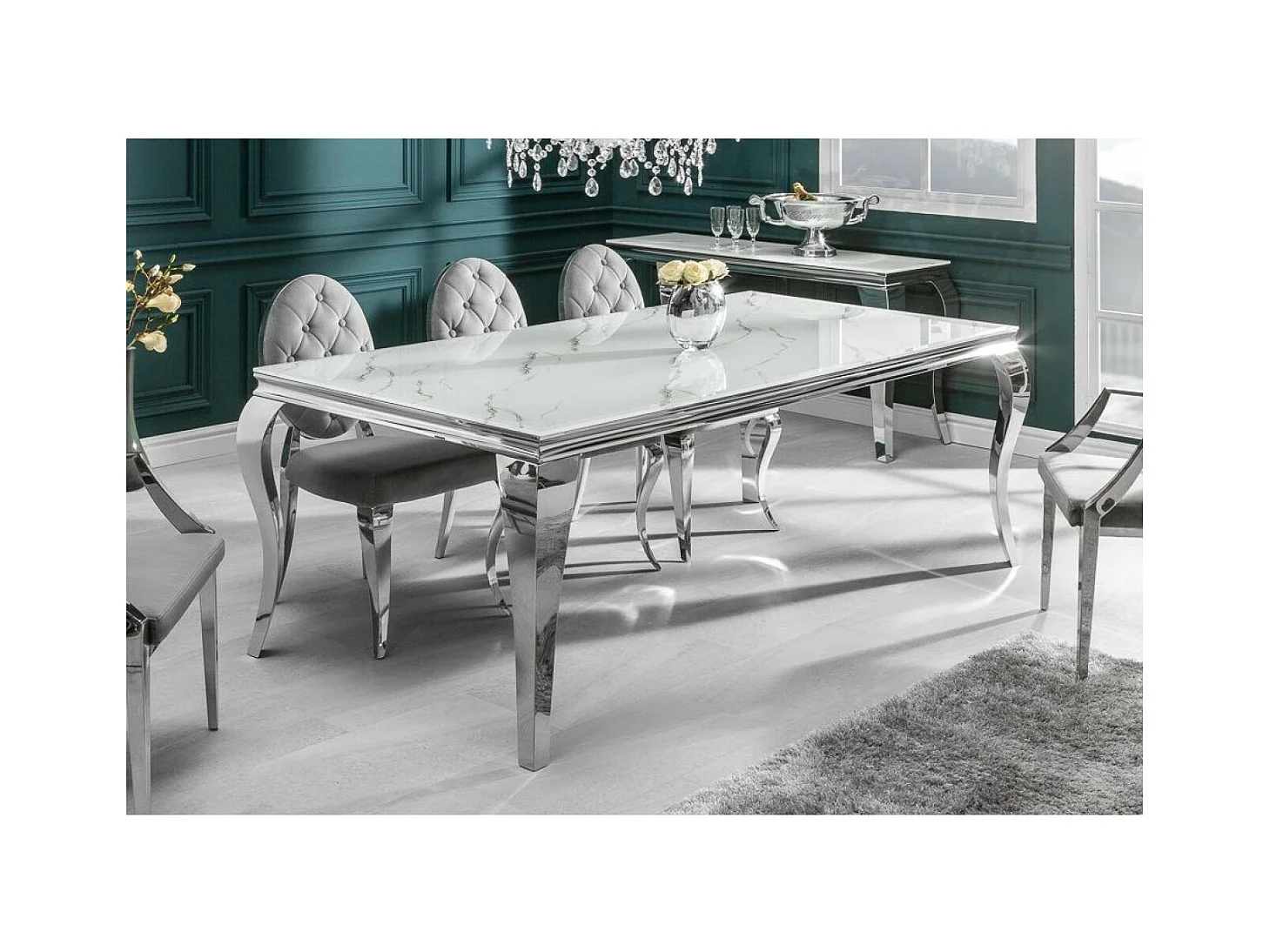 Table de salle à manger Prince L (90x180)/Céramique/Blanc&Argent