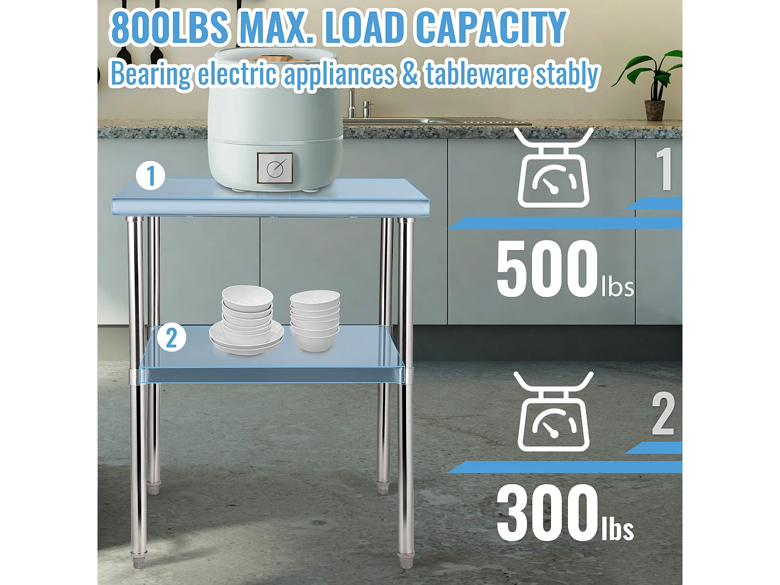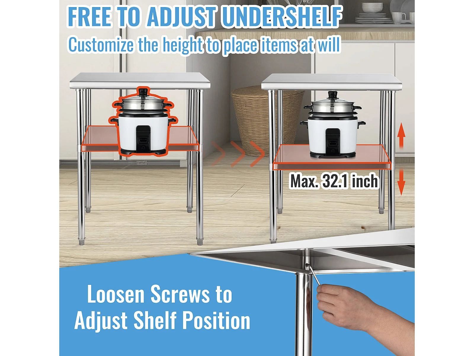 Table de Travail Cuisine SucceBuy 60.96x76.2x60.96 cm, Table de Travail de Préparation des Aliments en Acier Inoxydable