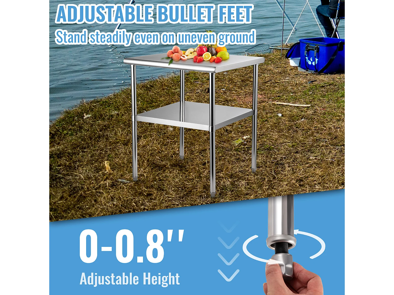 Table de Travail Cuisine en Acier Inoxydable SucceBuy, Table de Préparation des Aliments 60.96x60.96 cm
