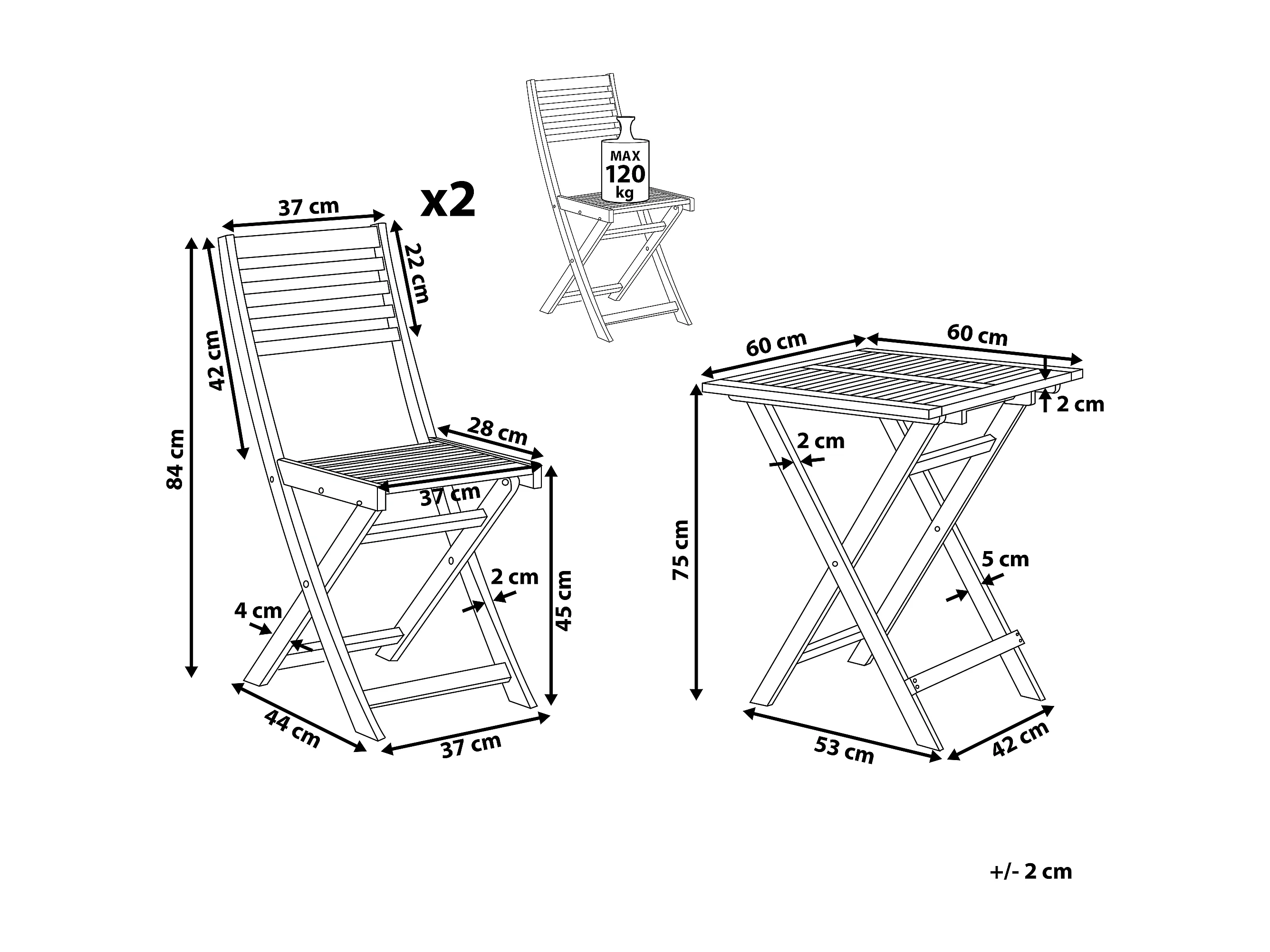 Ensemble bistrot Pliant FIJI Acacia Marron clair