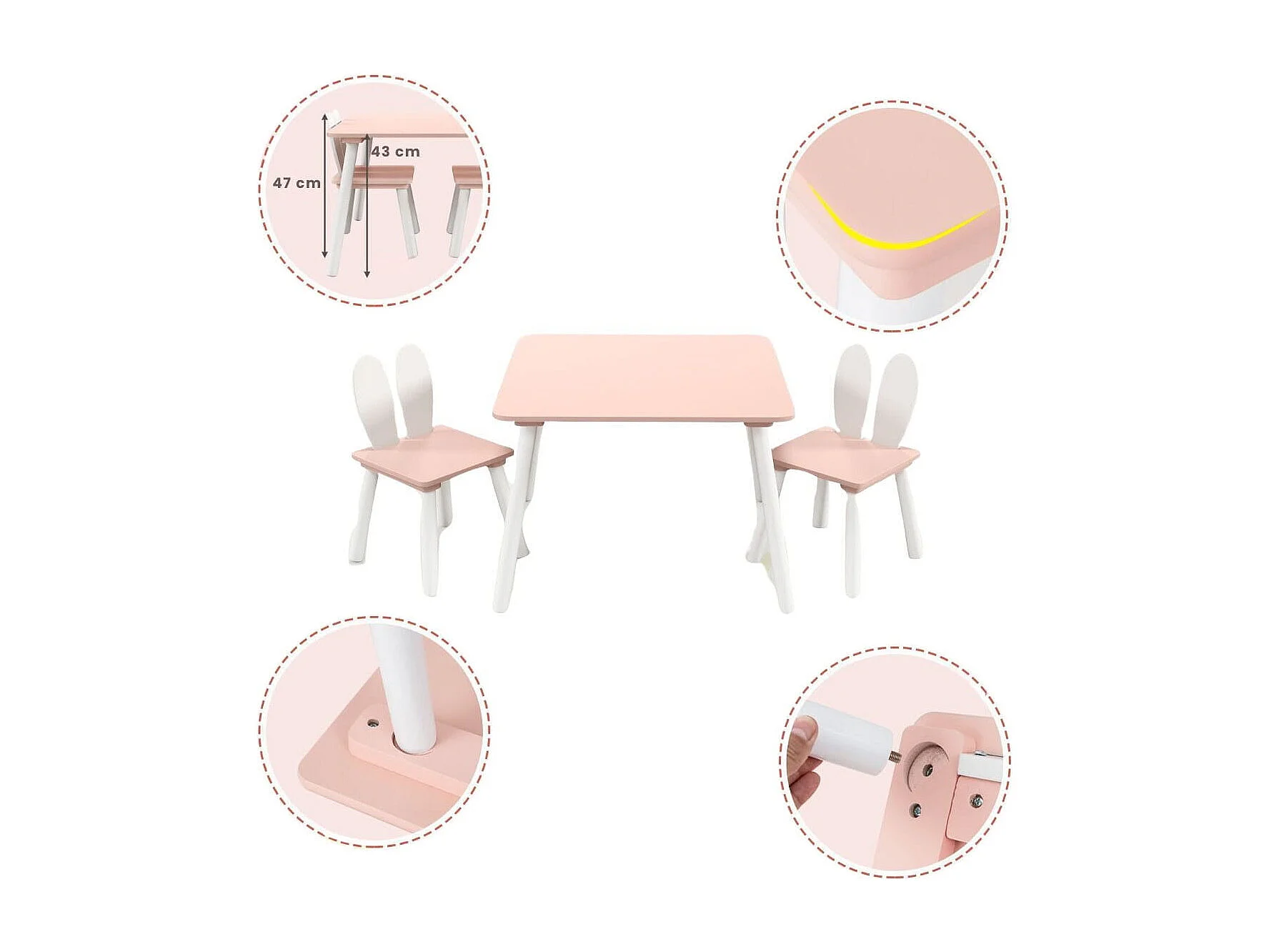 Table et 2 Chaises Enfants 3-6 Ans en Forme Lapin Chaises Ergonomique pour pour Jouer Dessiner Manger Rose
