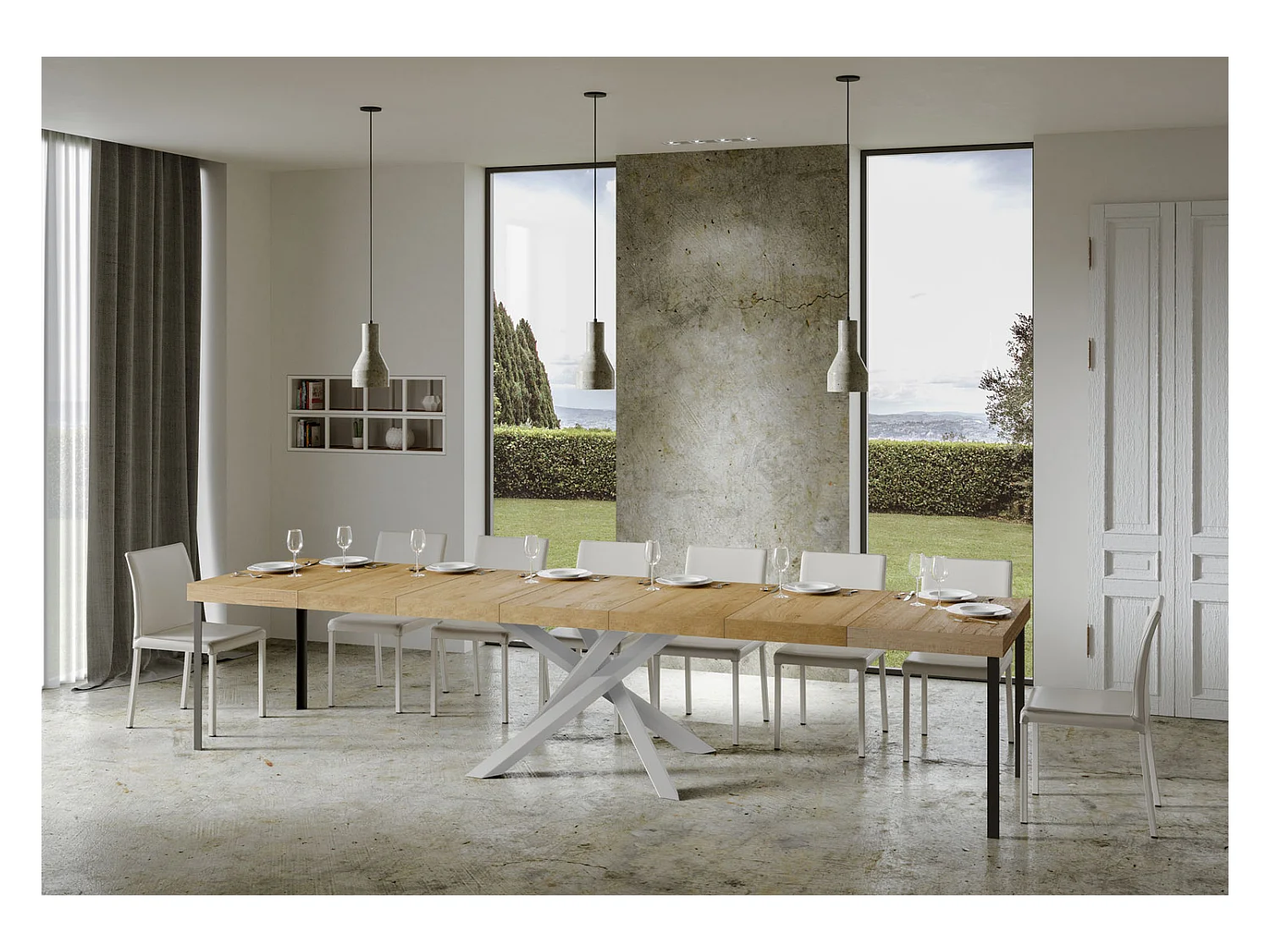 Table extensible 90x120/380 cm Volantis Premium chêne nature structure blanc