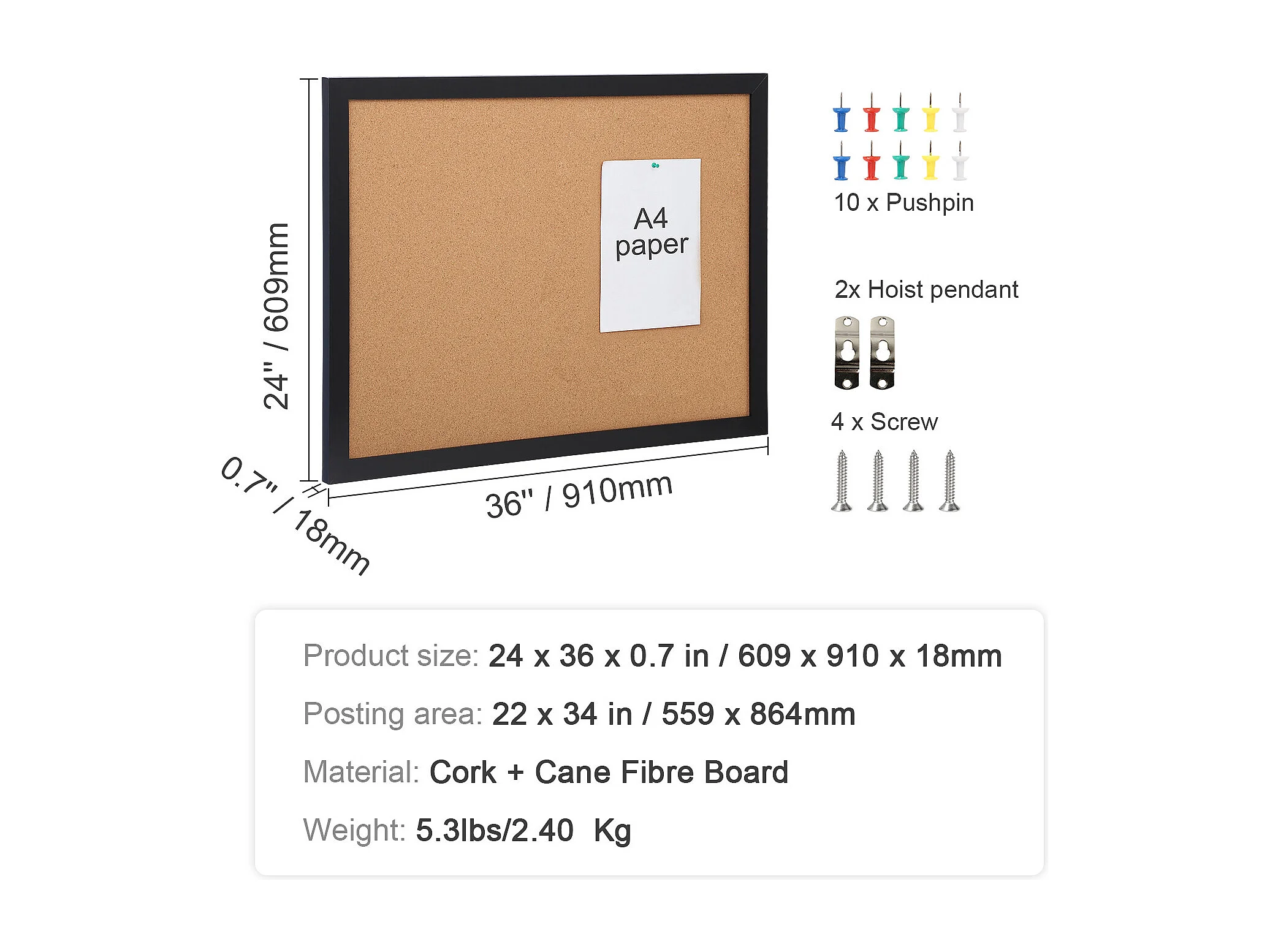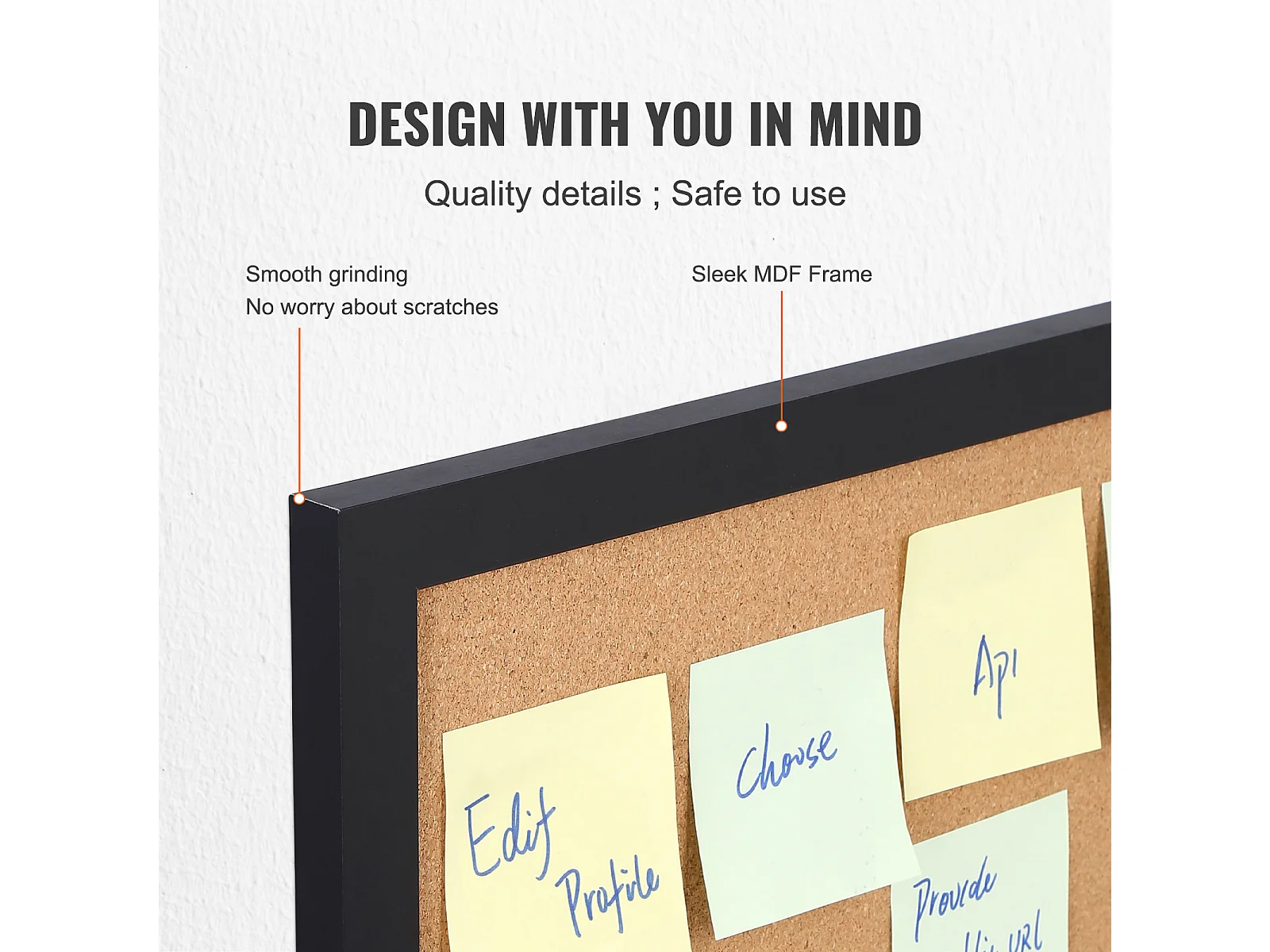 Tableau en Liège, SucceBuy Tableau d'Affichage en Liège, Cadre MDF 91 × 61 cm, Fixation Murale