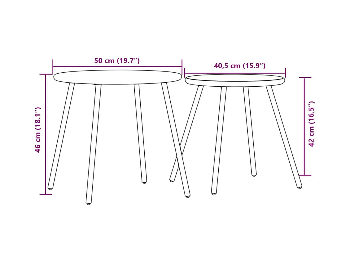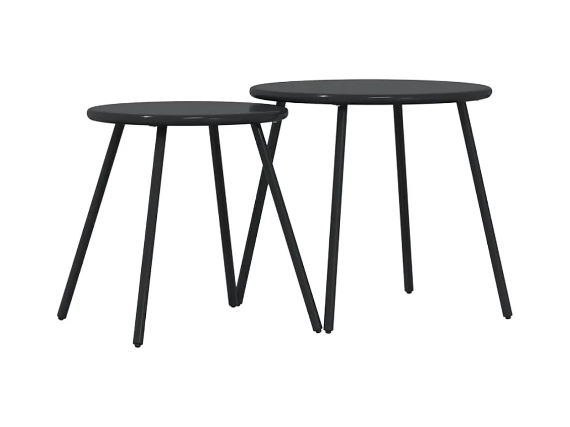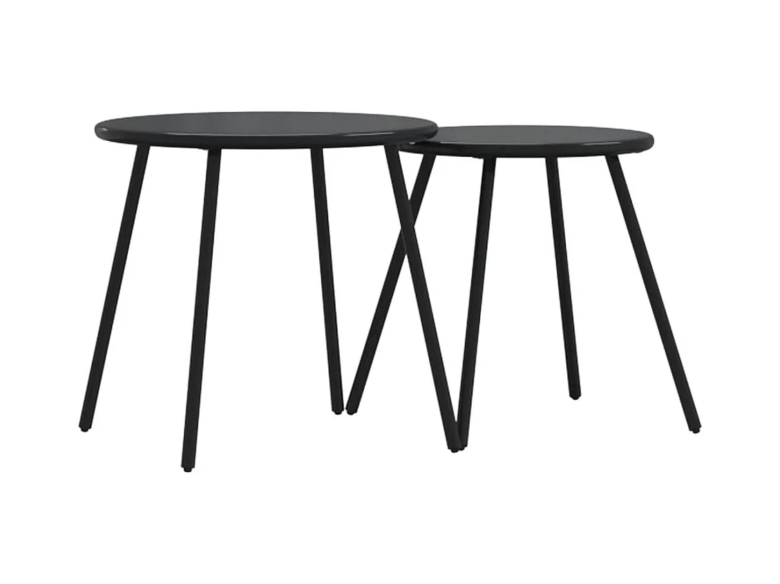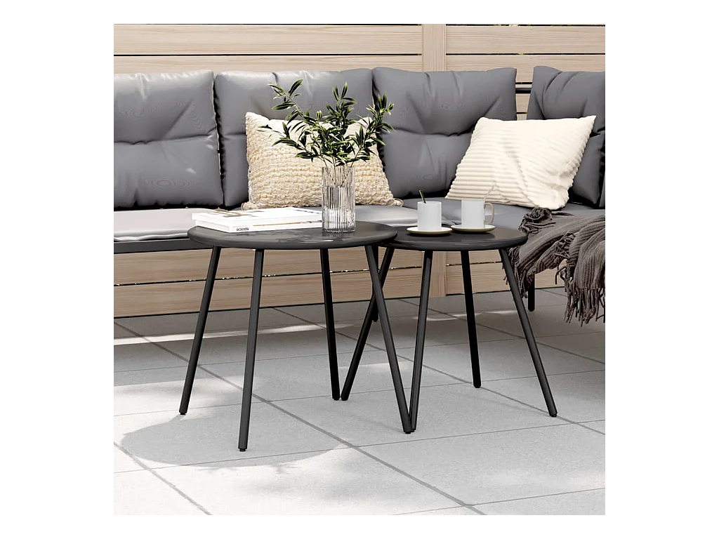 Tables basses de jardin 2pcs rondes noir acier enduit de poudre