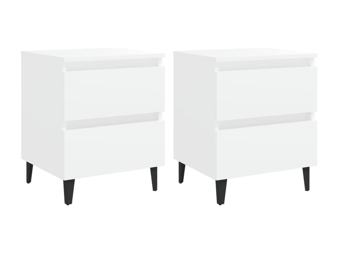 Tables de chevet pieds en pin 2 pcs blanc brillant 40x35x50 cm