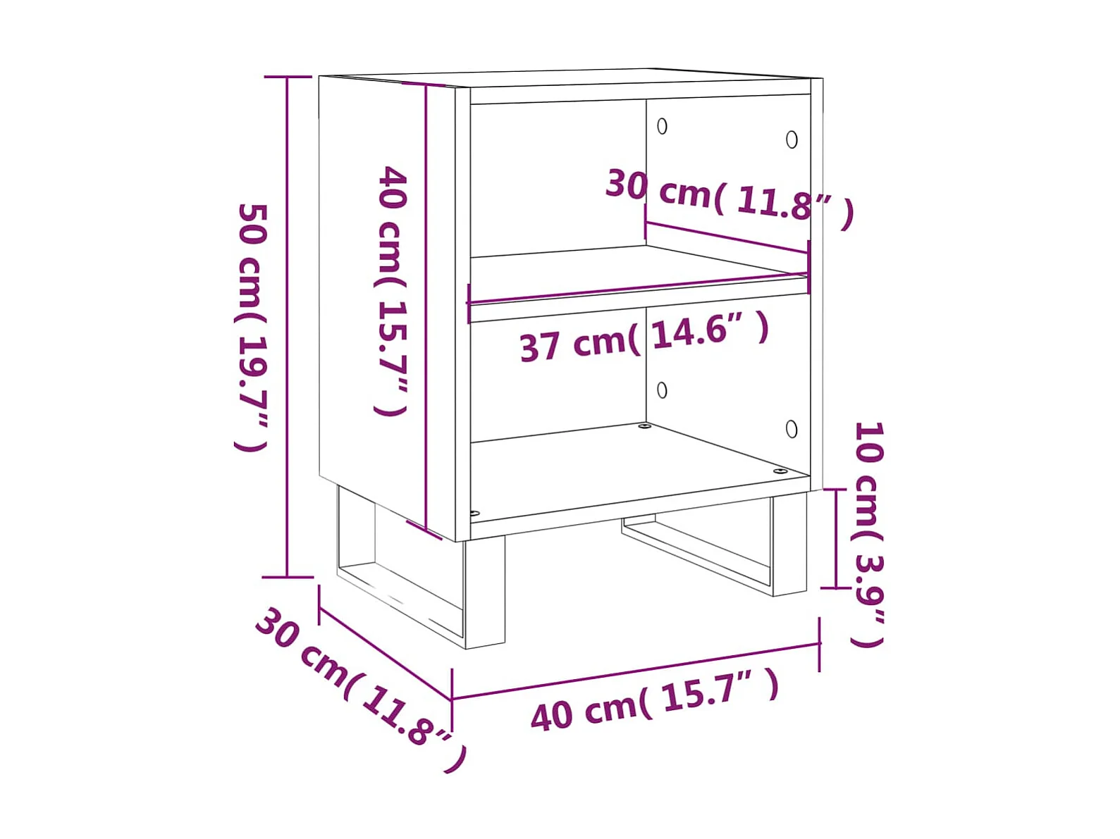 Table de chevet avec pieds en métal blanc 40x30x50 cm