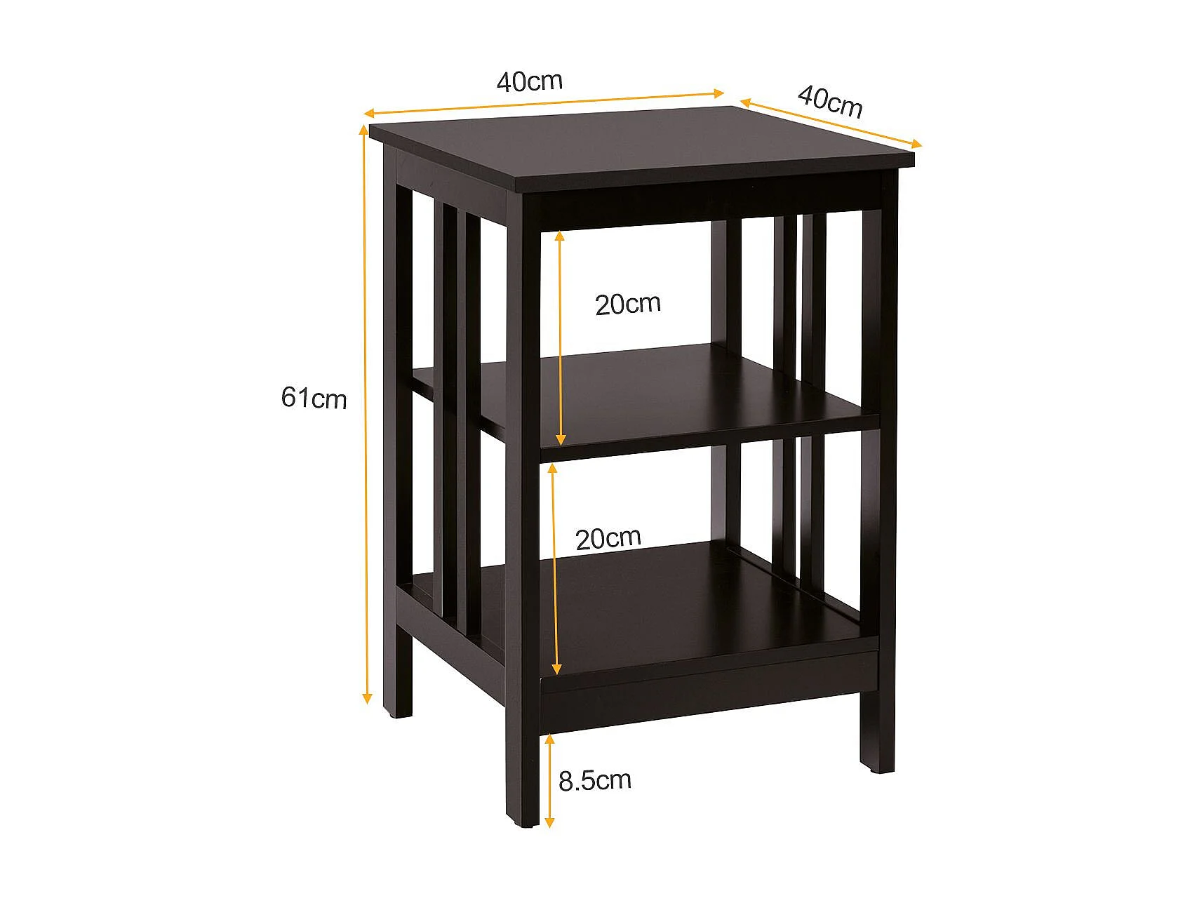 Tables de Chevet Moderne à 3 Niveaux 40 x 40 x 61 CM Table de Nuit avec Coussinets Antidérapants pour Salon/Chambre Café