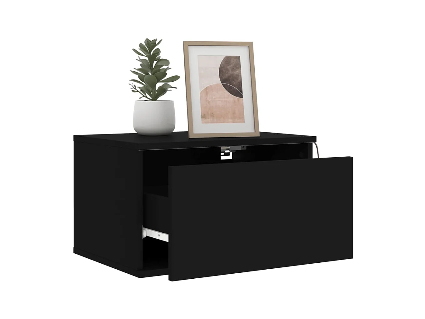 Tables de chevet murales avec lumières LED 2 pcs noir