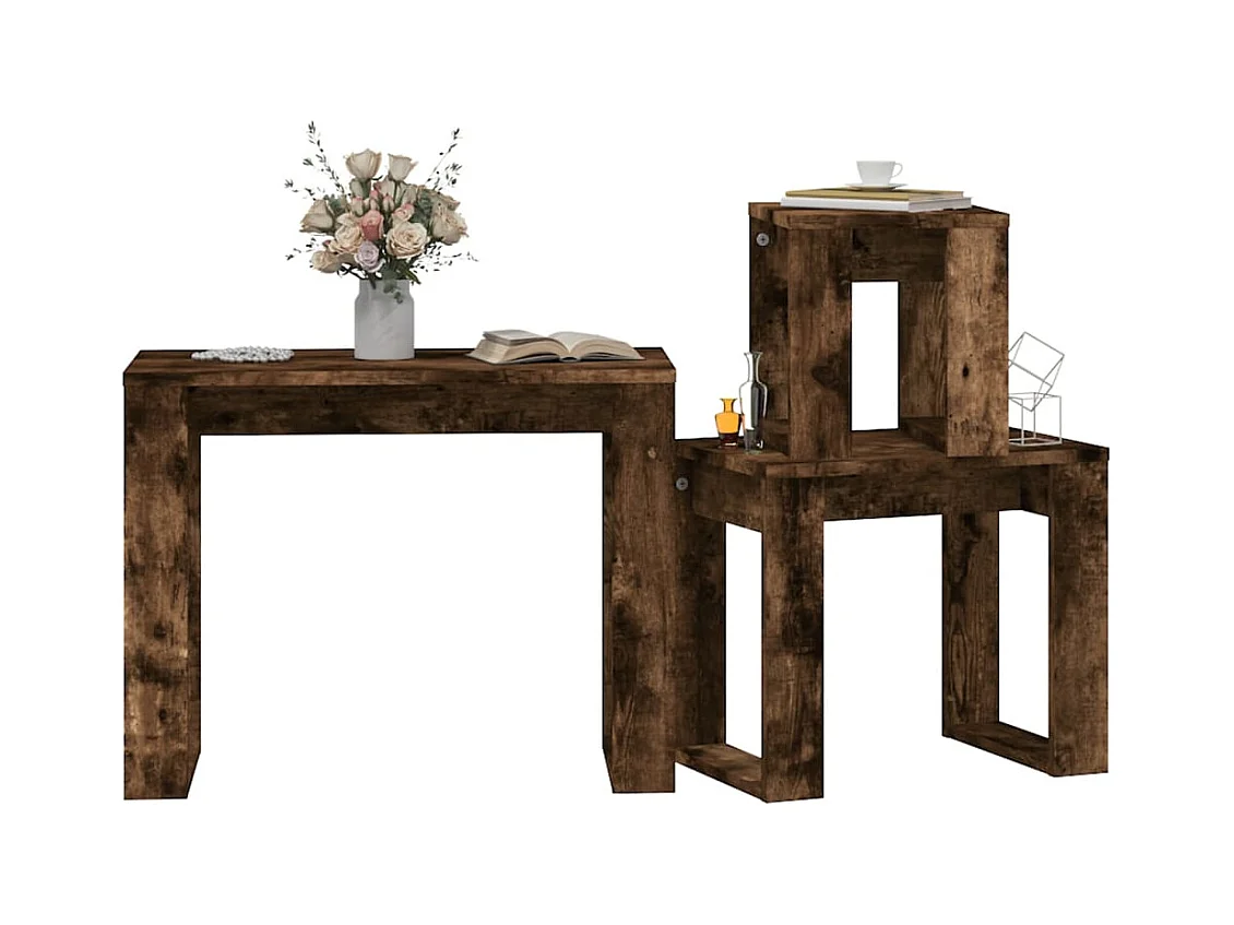 Tables gigognes 3 pcs Chêne fumé Bois d'ingénierie
