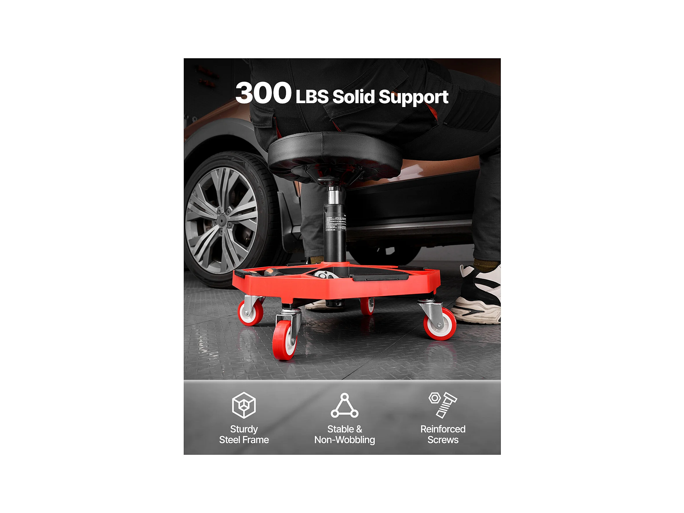Tabouret d'Atelier, SucceBuy Tabouret d'Atelier Mobile, Siège de Mécanicien sur Roulettes, Capacité 136 kg pour Réparation et Entretien Automobile, Noir et Rouge