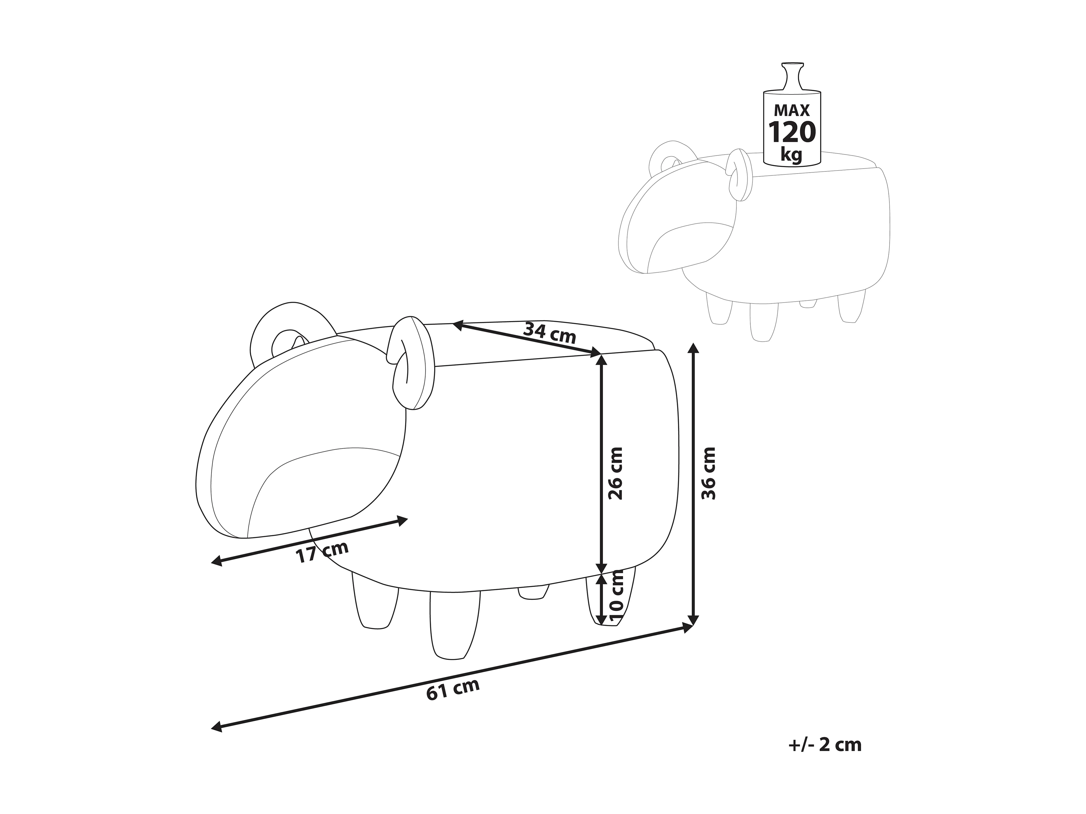 Tabouret animal LAMB Tissu Gris