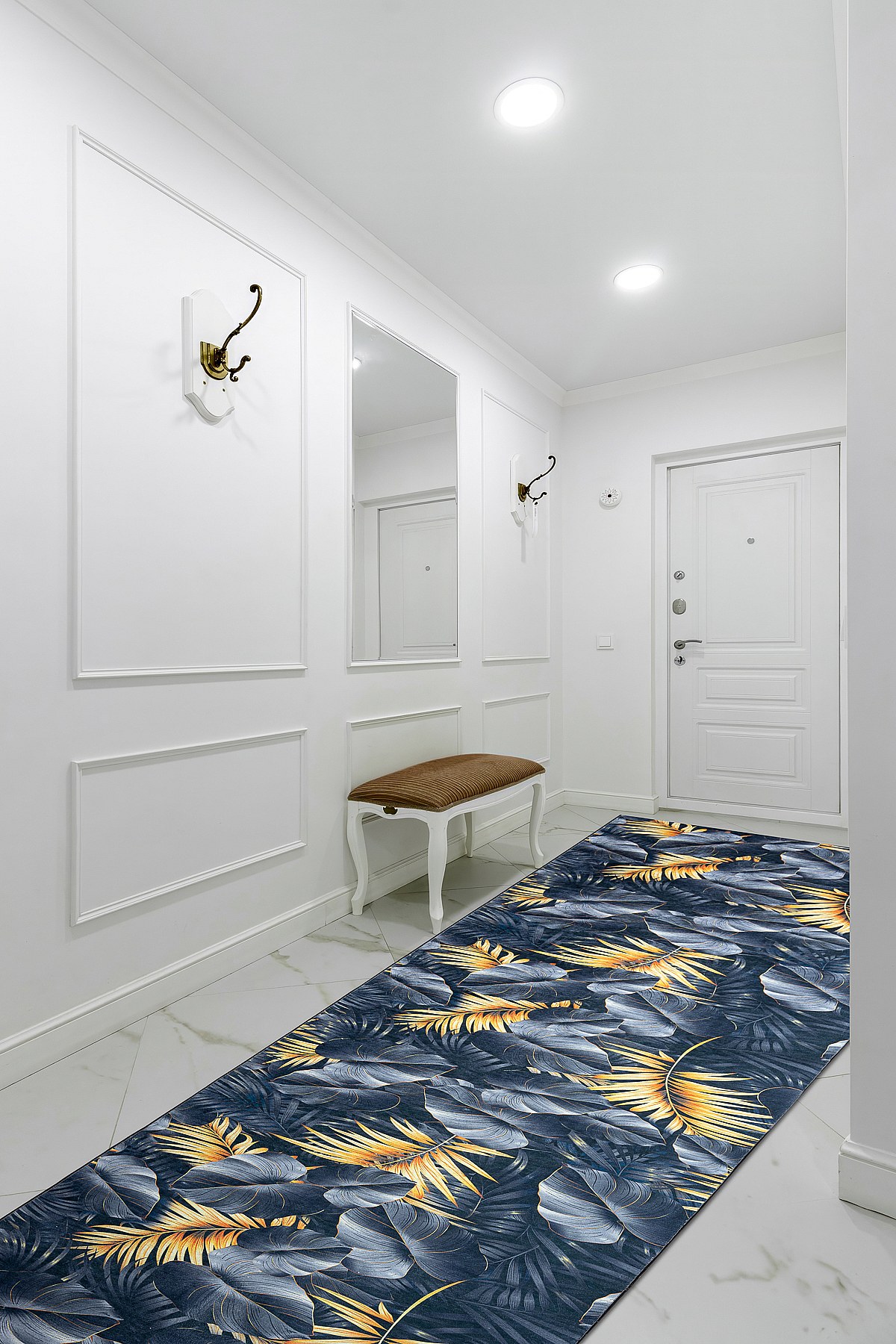 TAPIS DE COULOIR antidérapant LOTUS FERNS 45270 Feuilles gris / L'or 100x1350 cm
