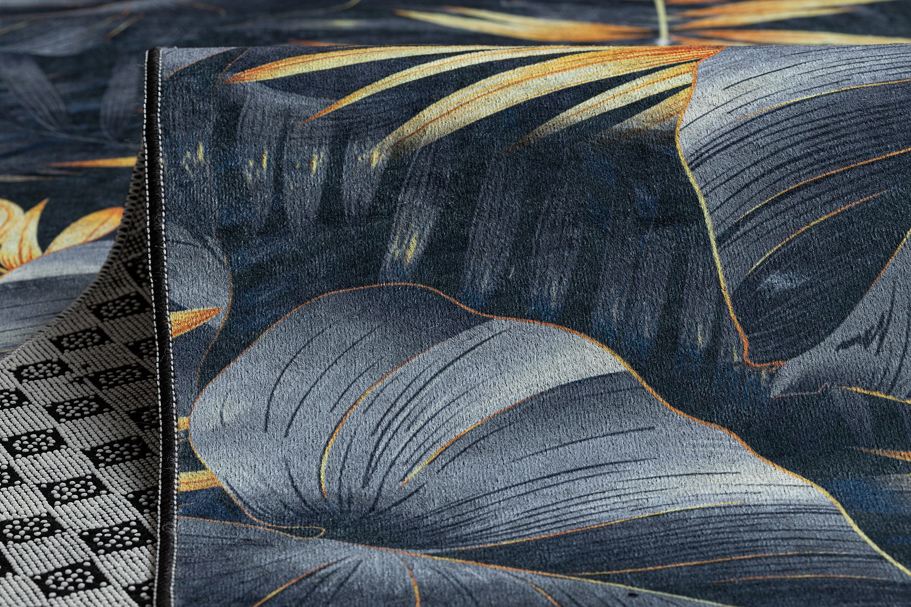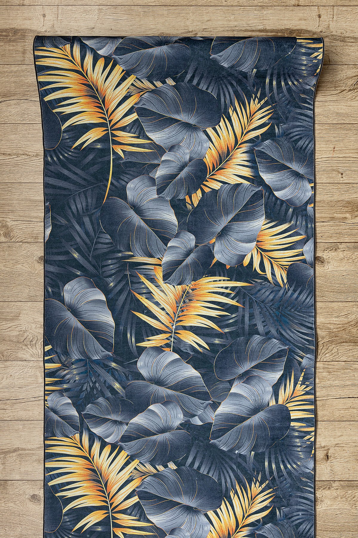 TAPIS DE COULOIR antidérapant LOTUS FERNS 45270 Feuilles gris / L'or 100x960 cm