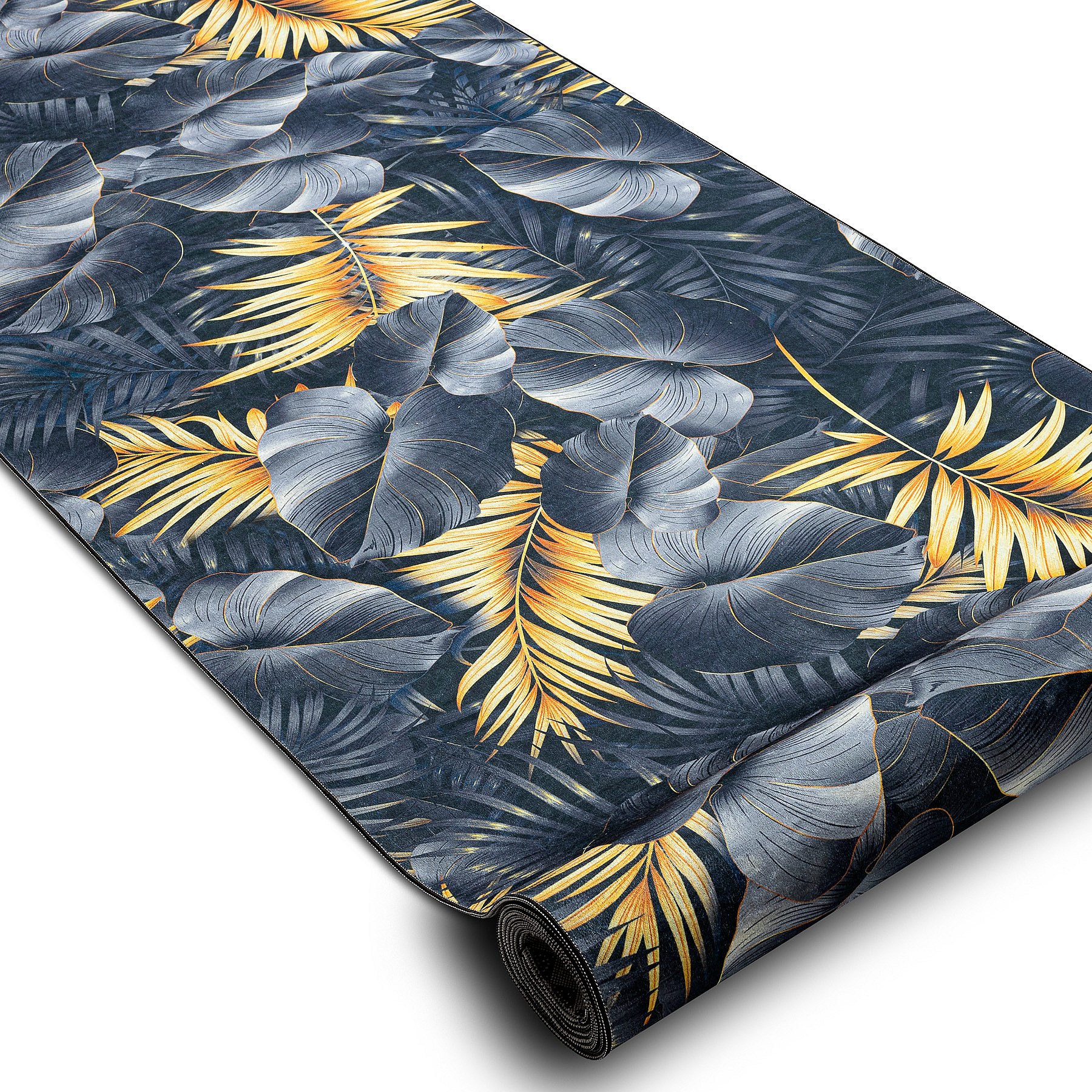 TAPIS DE COULOIR antidérapant LOTUS FERNS 45270 Feuilles gris / L'or 100x970 cm