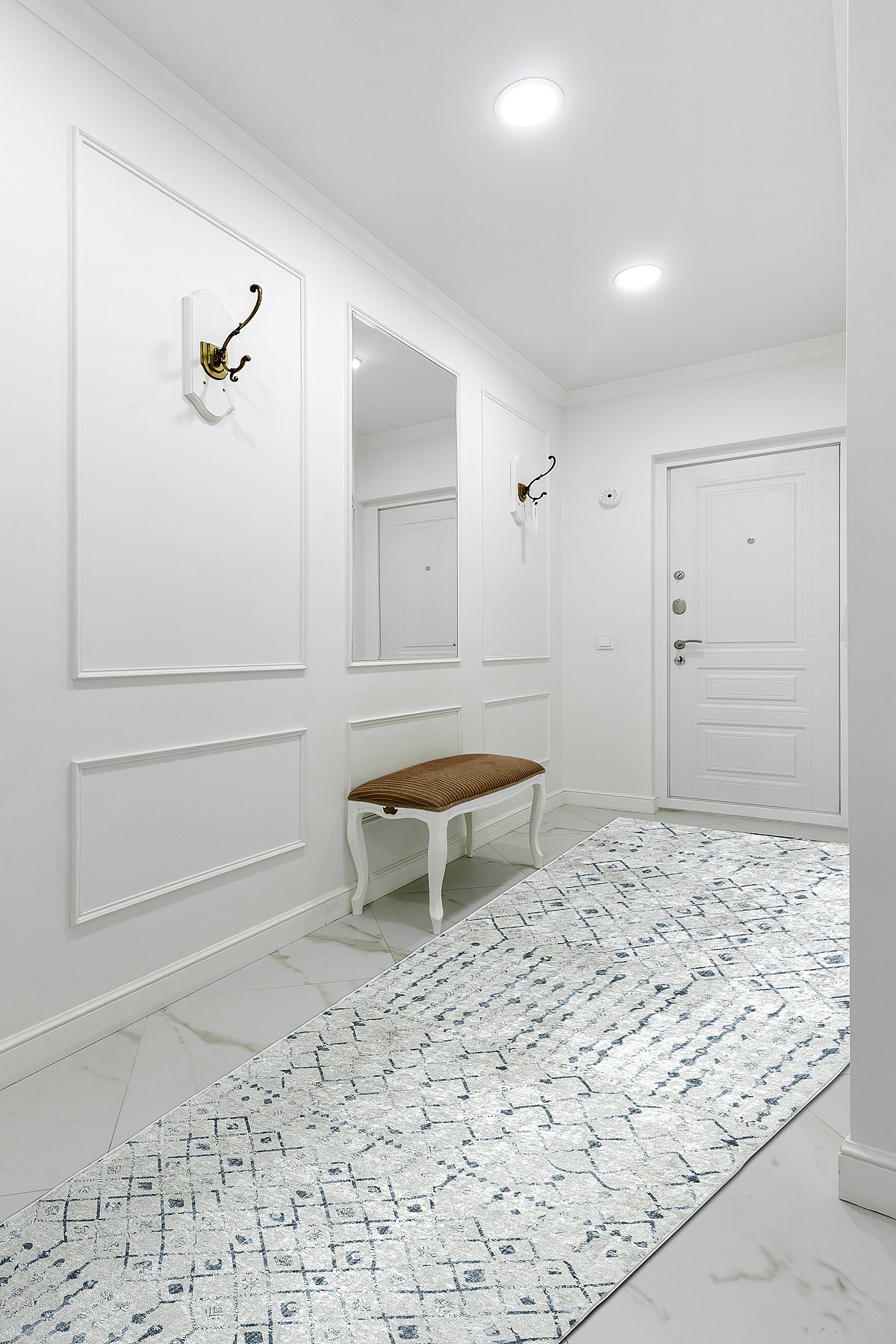 ▪ épaisseur du tapis: env. 5 mm ▪ poids totale: env. 0,70 kg/m2 ▪ matières: 100% polyester ▪ antidérapant bas du produit ▪ Il tapis peut être lavé à la machine Tapis de course LOTUS : confort et sécurité au quotidien Les tapis de course ne sont pas seulement un complément pratique pour les entrées, les cuisines ou les couloirs, mais aussi un élément qui influence la perception de l'ensemble de l'intérieur. C'est pourquoi la collection de tapis de course LOTUS associe un design tendance à la fonctionnalité dont vous avez besoin au quotidien. Les tapis de course LOTUS ont été créés pour les personnes qui aiment l'esthétique, la sécurité et la facilité d'entretien. Grâce à leur face inférieure antidérapante, les tapis de course LOTUS garantissent stabilité et sécurité, même sur des surfaces glissantes ou mouillées. C'est le choix idéal pour les maisons avec des enfants, des personnes âgées ou des animaux domestiques. Grâce à leur construction légère et flexible, ils s'adaptent parfaitement aux surfaces et ne se déplacent pas lors de la marche. Les tapis de cette collection sont faciles à entretenir : ils peuvent être lavés en machine jusqu'à 30°C et il suffit de passer l'aspirateur tous les jours. En effet, le poil ras limite l'entrée de la poussière et de la saleté, ce qui sera particulièrement apprécié par les personnes allergiques. Les fibres synthétiques utilisées dans la production sont sans danger pour la santé et respectueuses de l'environnement, comme le confirme le certificat OEKO-TEX. Les revêtements de sol LOTUS conviennent également parfaitement aux pièces équipées d'un chauffage par le sol, offrant un confort thermique et un plaisir d'utilisation. Caractéristiques de la collection LOTUS: Ils conviennent à divers environnements : cuisine, couloir, entrée ou salle de bains Lavables en machine (jusqu'à 30°C) - entretien confortable et sans effort Le dessous