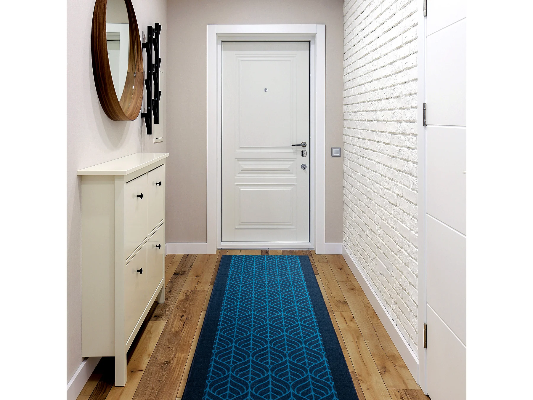 TAPIS DE COULOIR ANTIDÉRAPANT PIÓRA plumes bleu foncé 90x910 cm