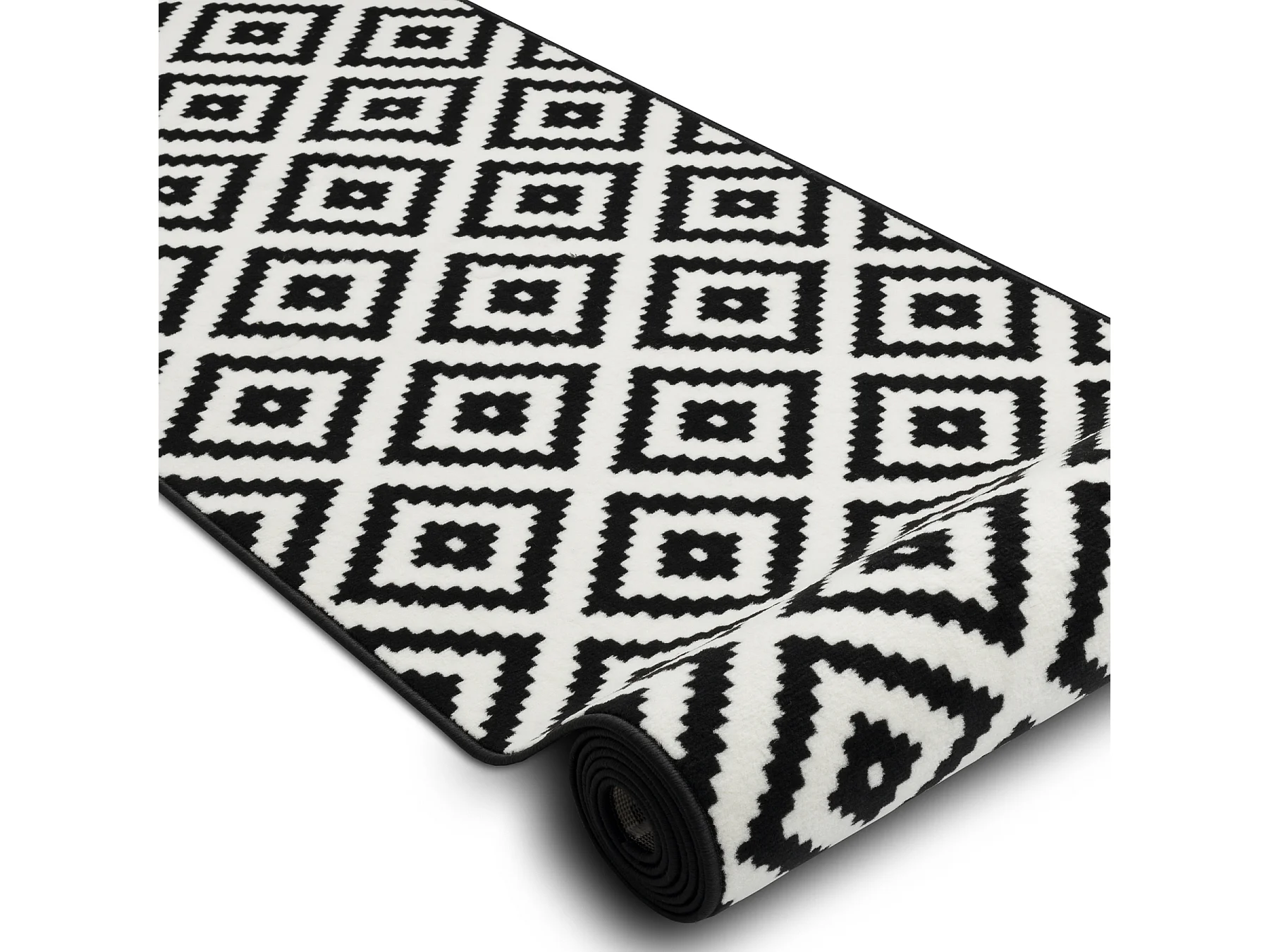 TAPIS DE COULOIR BCF MORAD Ruta diamants noir / crème 60x600 cm