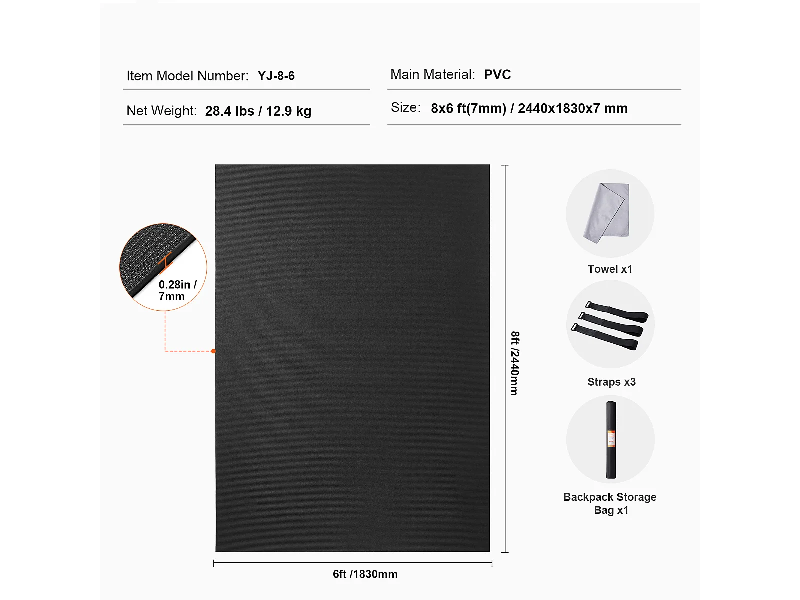 Tapis de Yoga SucceBuy, Tapis d'Exercice, 2,4 x 1,8 m, Tapis de Yoga Antidérapant, PVC, pour Yoga à Domicile, Pilates et Entraînement au Sol