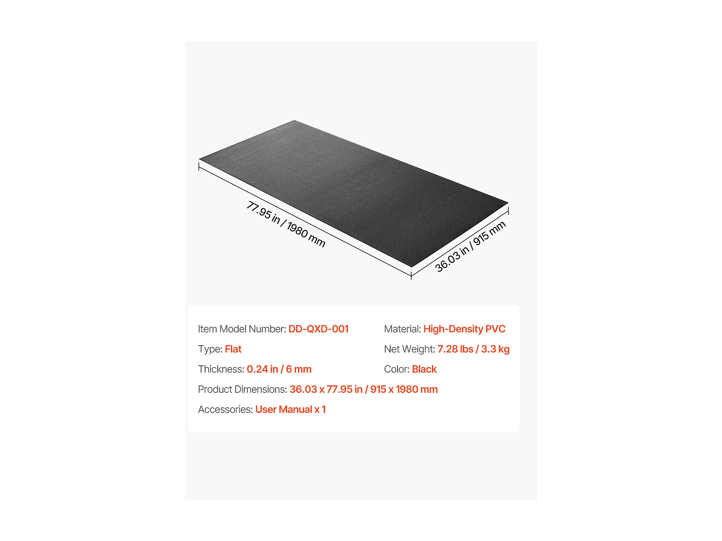 Tapis d'Équipement d'Exercice SucceBuy, 91,5 x 198 x 0,6 cm, Tapis de Protection de Sol pour Vélos Elliptiques et Tapis de Marche Compacts, en PVC Haute Densité