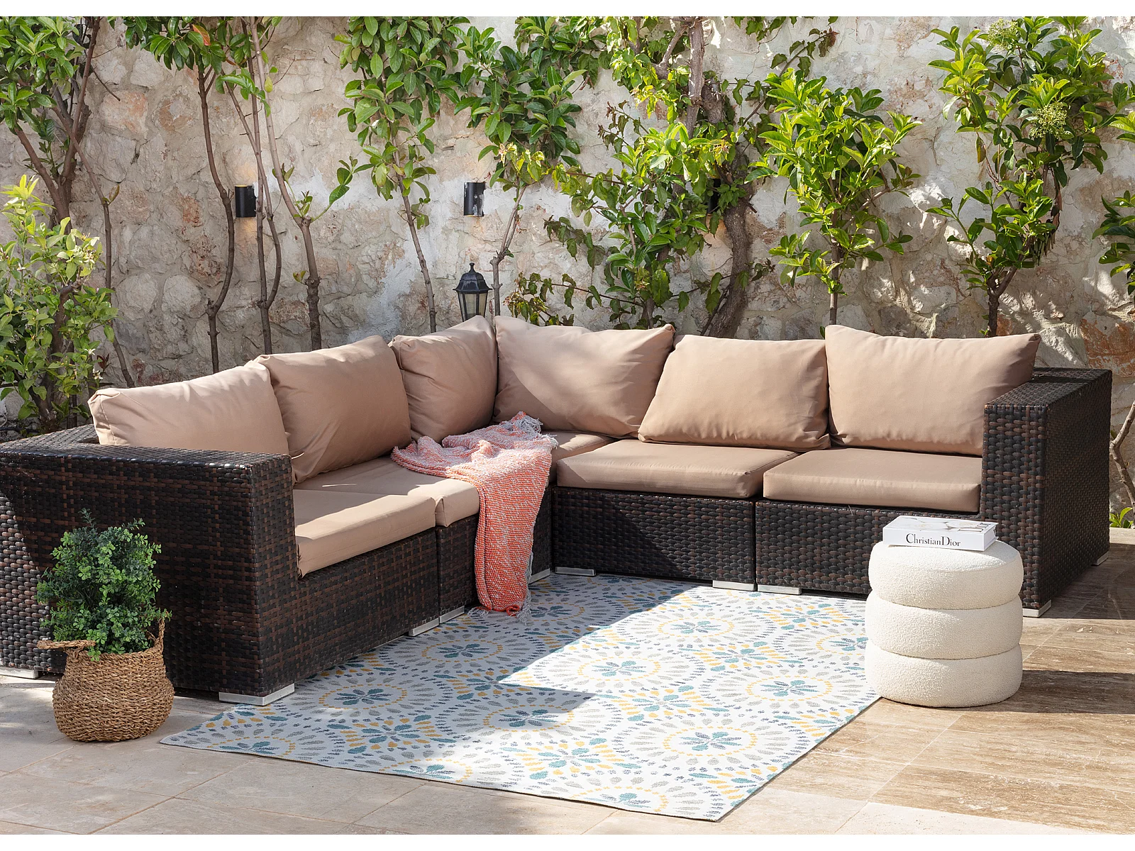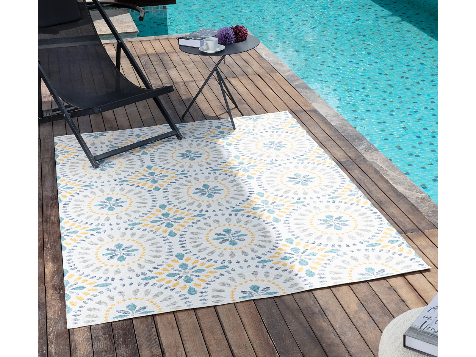 Tapis d'Extérieur/Intérieur Bohème - Bleu/Jaune Moutarde - 200x275cm - DHENA