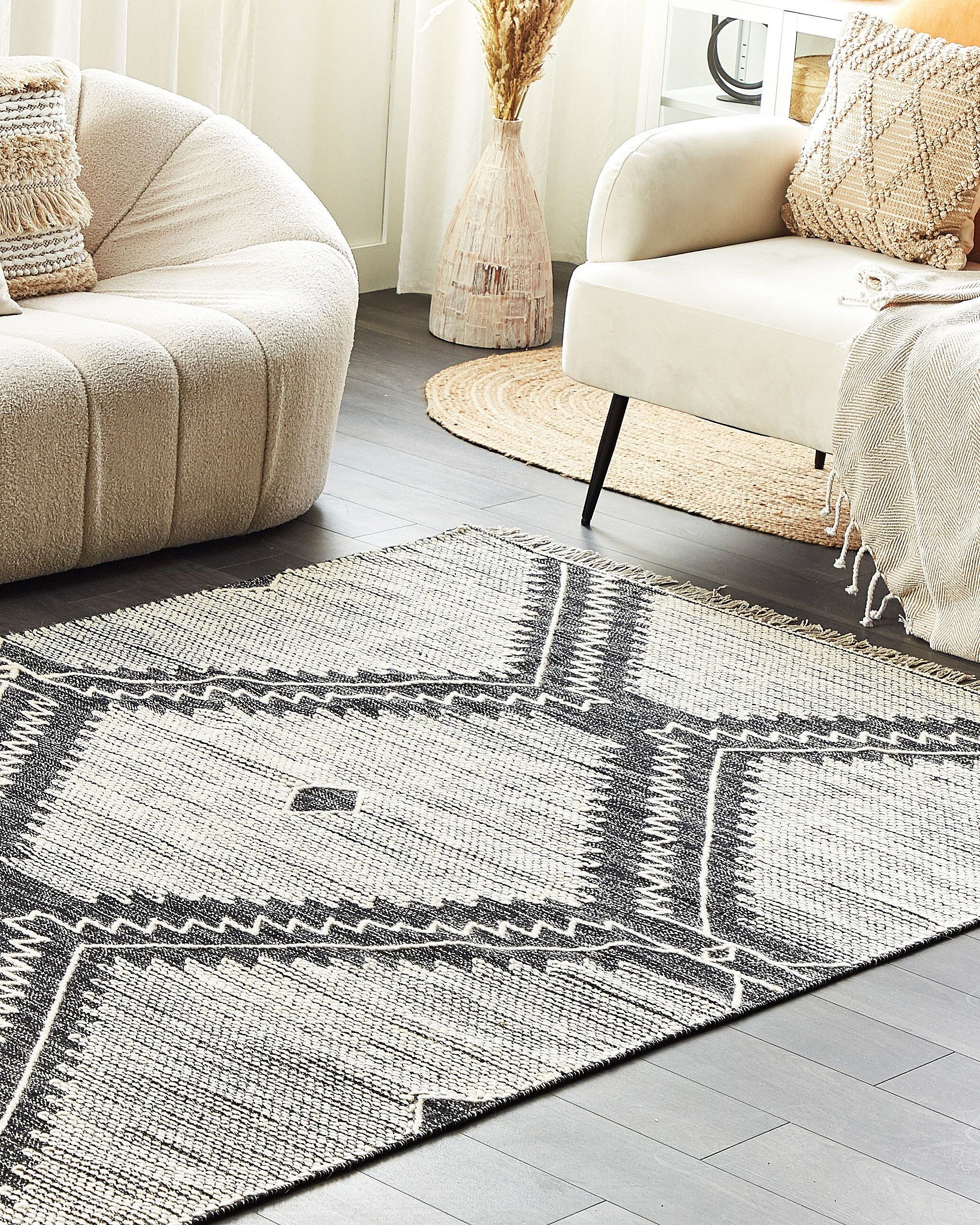 Tapis BATHINDA Noir/blanc 140 x 200 cm Coton