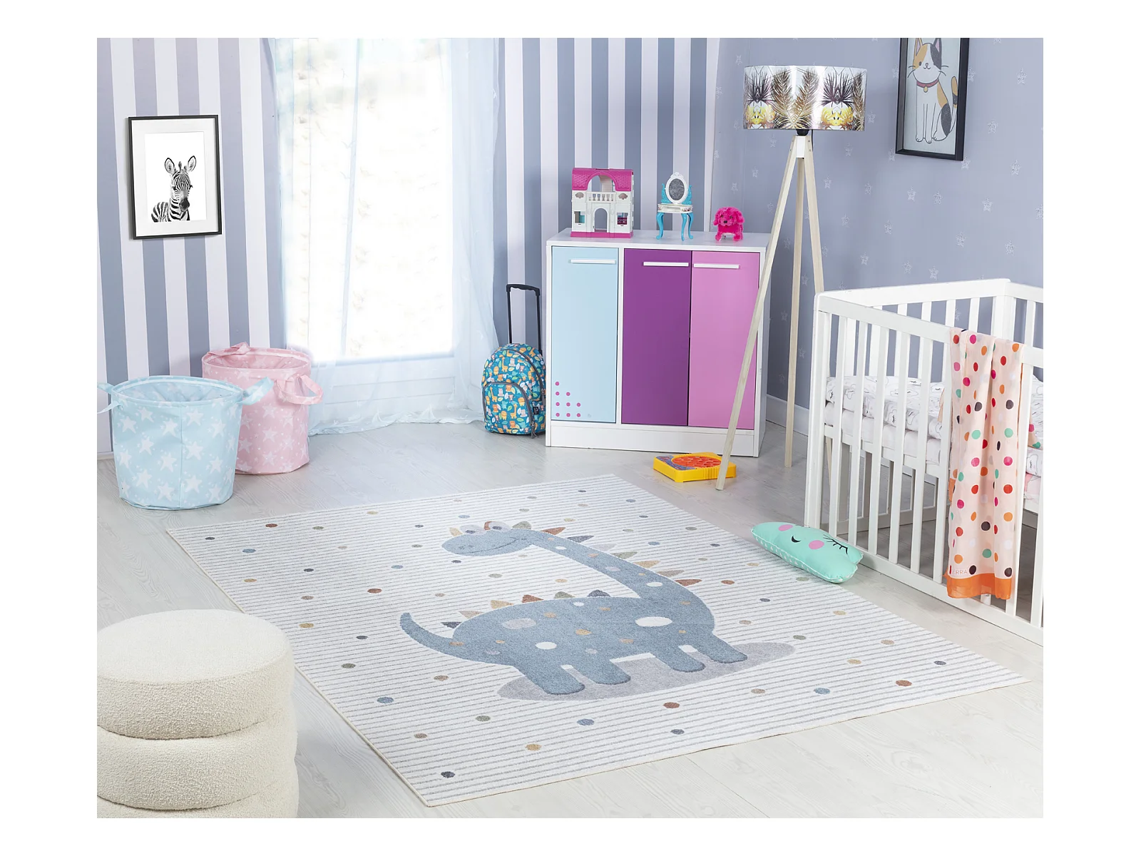 Tapis Enfant Lavable en Machine Dinosaure - Beige/Gris - 160x213cm - DINO