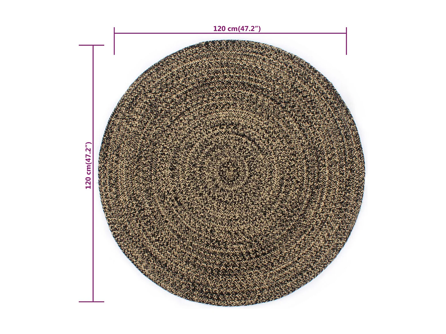 Tapis fait à la main Jute Noir et naturel 120 cm